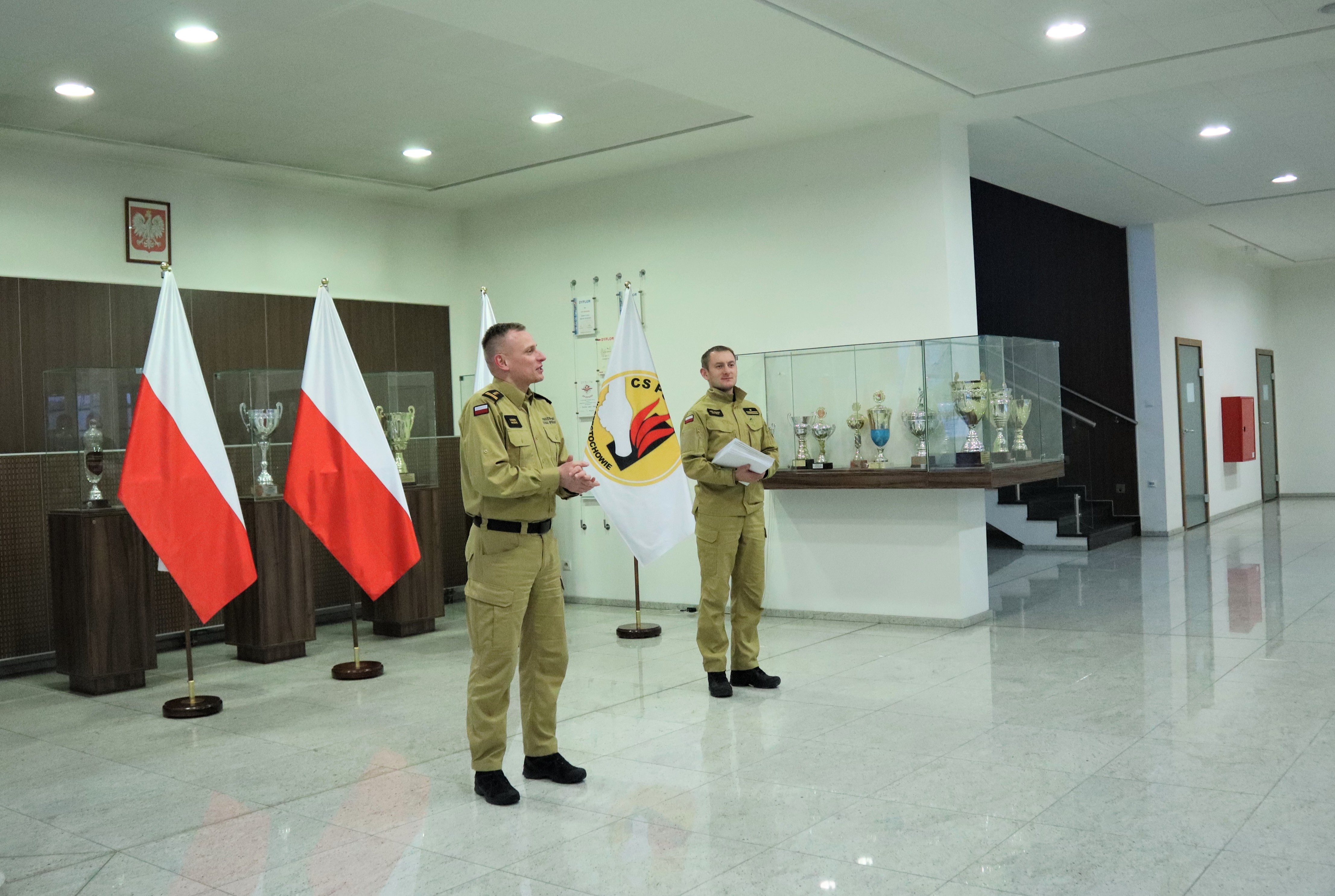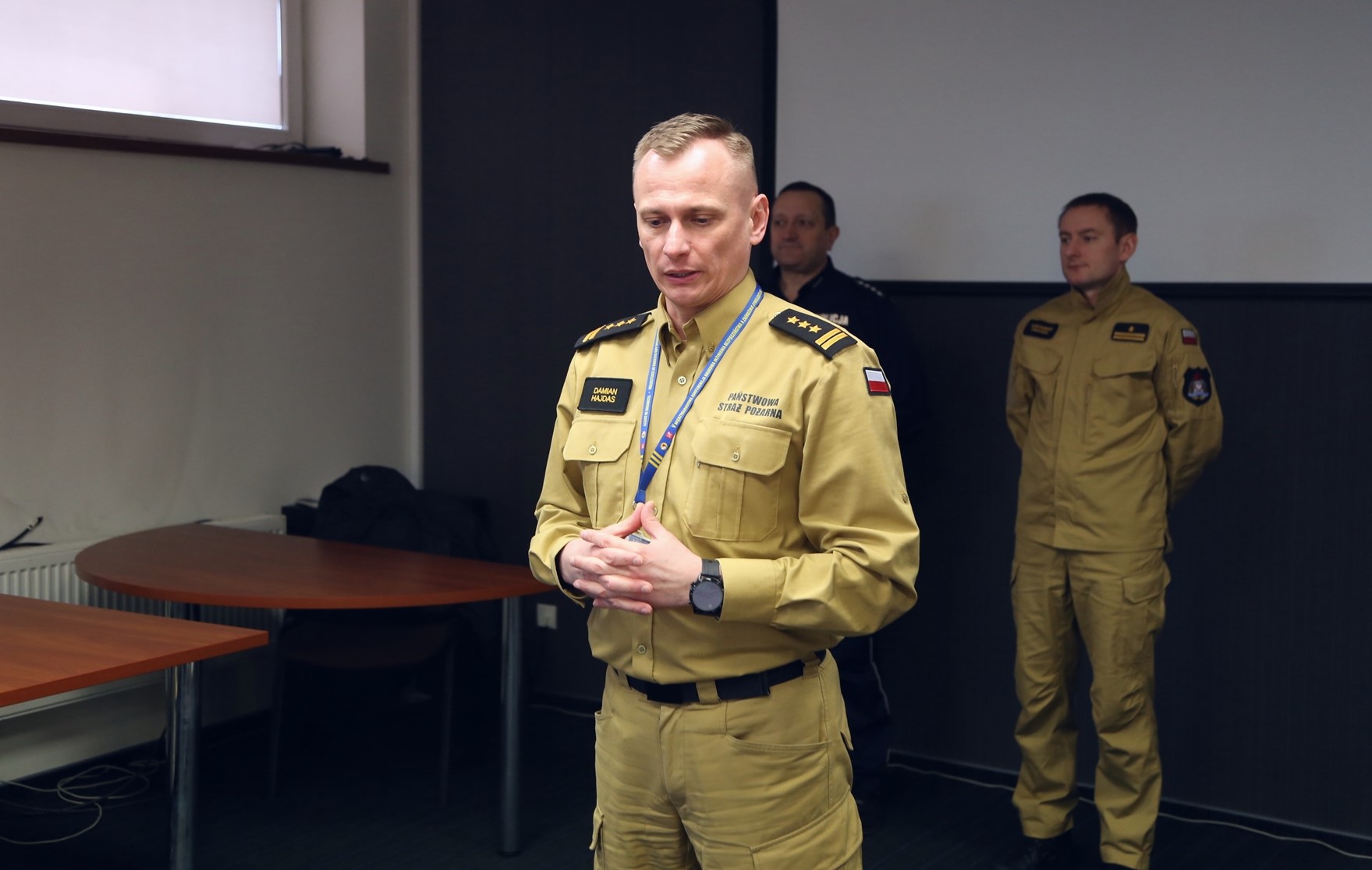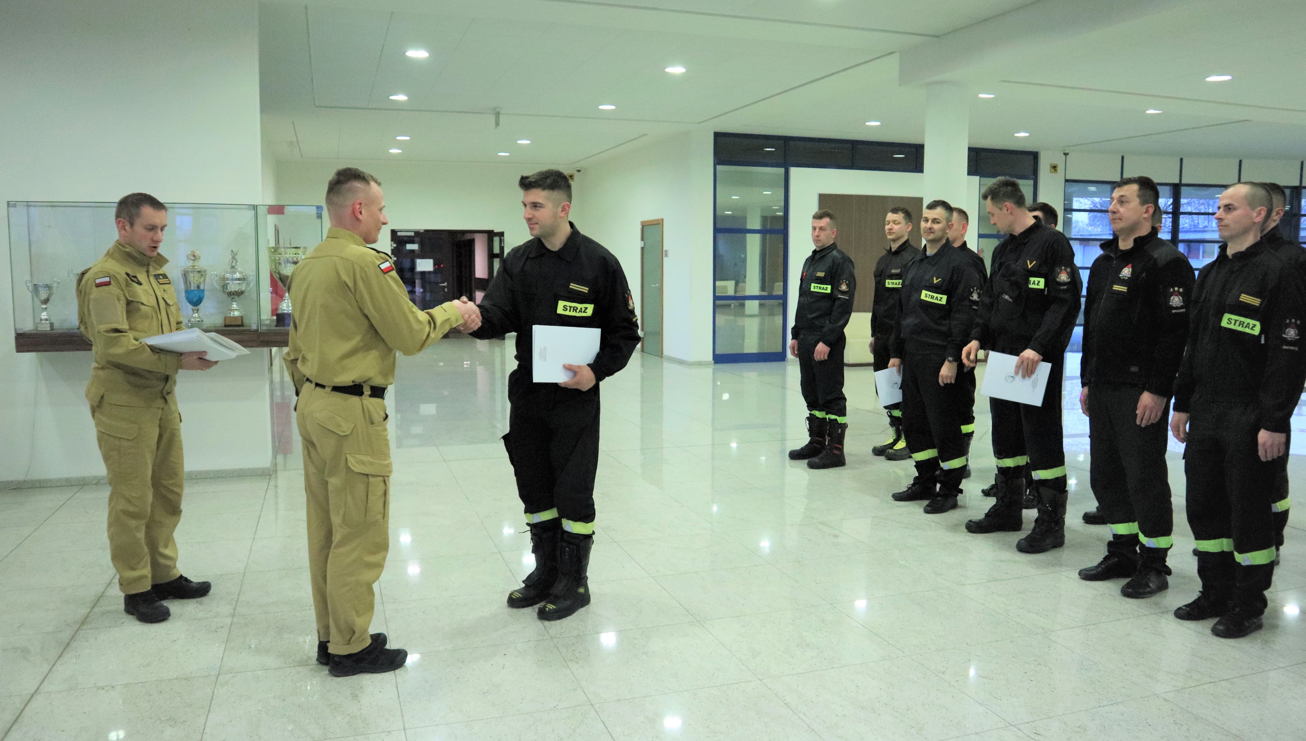 W uroczystości zakończenia udział wziął i wręczył stosowne zaświadczenia Zastępca Komendanta Centralnej Szkoły PSP st. bryg. Damian Hajdas w obecności Zastępcy Naczelnika Wydziału Szkoleń Specjalistycznych i Współpracy Międzynarodowej: mł. bryg. Arkadiusza Omazdy.