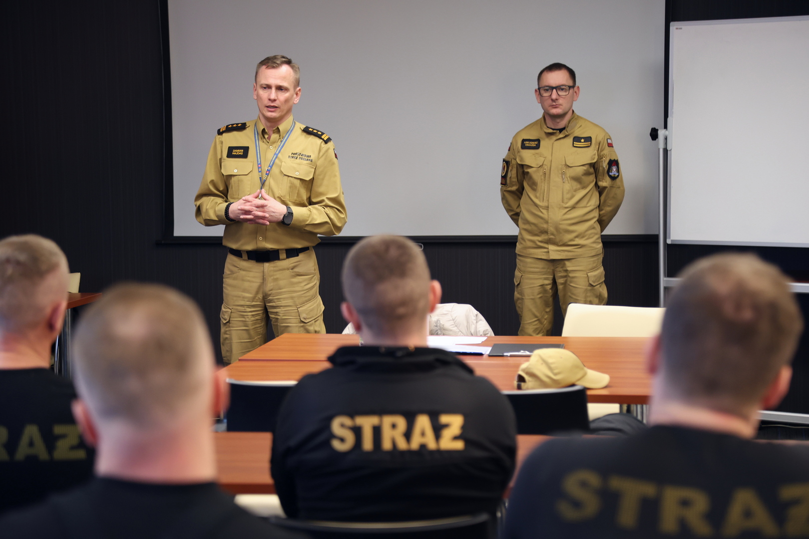 W uroczystości zakończenia udział wziął i wręczył stosowne zaświadczenia st. bryg. dr Damian Hajdas - p.o. Komendanta Centralnej Szkoły PSP w obecności Naczelnika Wydziału Szkoleń Specjalistycznych i Współpracy Międzynarodowej - st. bryg. Bogumiła Zalewskiego, Zastępcy Naczelnika Wydziału Szkoleń Specjalistycznych i Współpracy Międzynarodowej - mł. bryg. Arkadiusza Omazdy oraz Naczelnika Wydziału Technicznego - st. bryg. Romana Ławińskiego.