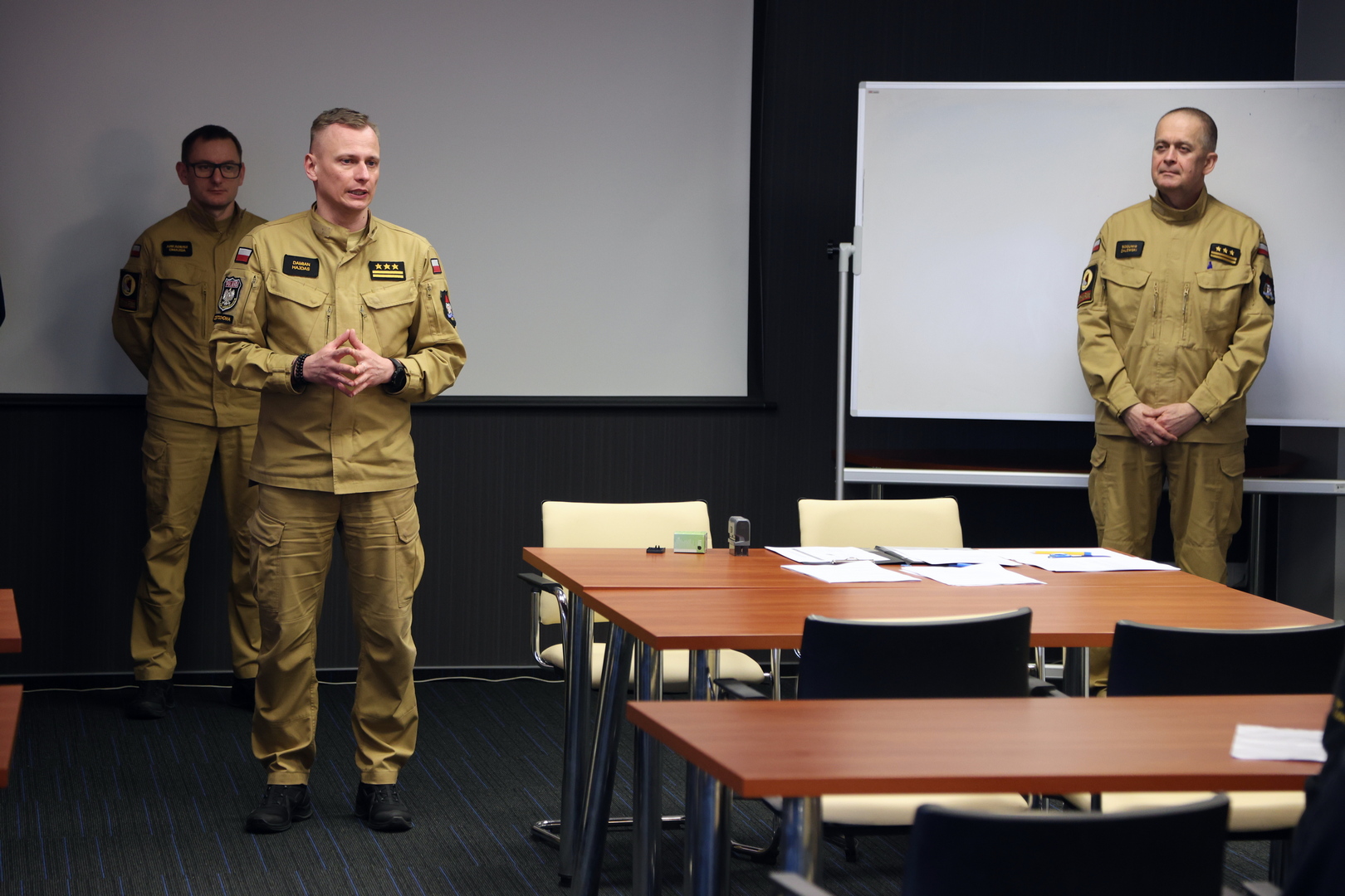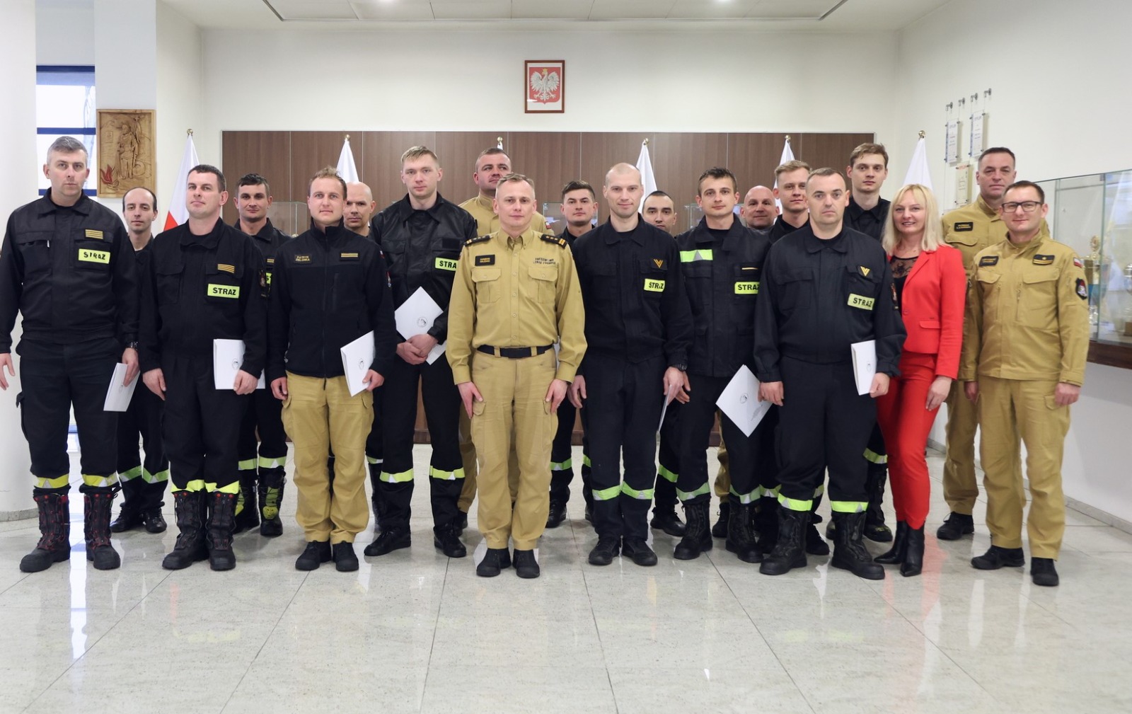 W uroczystości zakończenia uczestniczył st. bryg. dr Damian Hajdas p.o. Komendant Centralnej Szkoły PSP w Częstochowie, który wręczył stosowne zaświadczenia. W spotkaniu wzięli również udział Naczelnik z Zastępcą Wydziału Szkoleń Specjalistycznych i Współpracy Międzynarodowej - st. bryg. Bogumił Zalewski, mł. bryg. Arkadiusz Omazda oraz Naczelnik Wydziału Technicznego - st. bryg. Roman Ławiński.