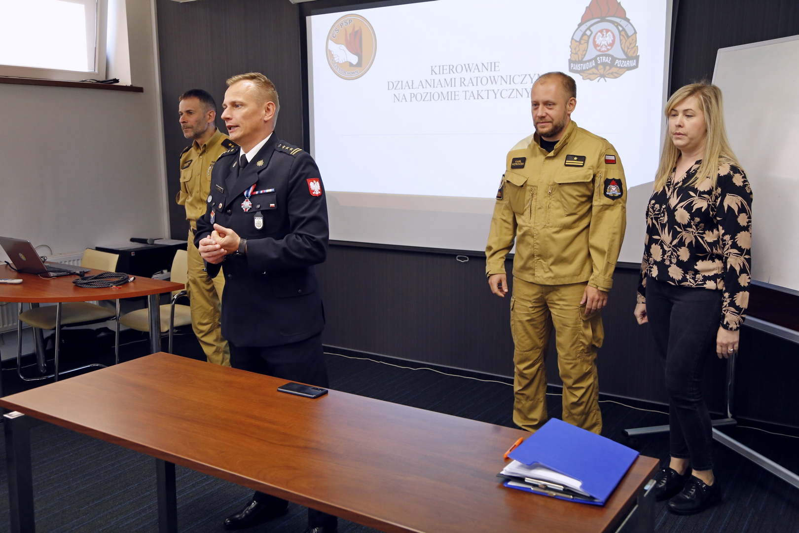 Na zakończenie wszyscy uczestnicy otrzymali zaświadczenia o ukończeniu przedmiotowego szkolenia. Zaświadczenia uczestnikom szkolenia wręczył Zastępca Komendanta Centralnej Szkoły PSP w Częstochowie st. bryg. Damian Hajdas w obecności: Zastępcy Naczelnika Wydziału Szkoleń Specjalistycznych i Współpracy Międzynarodowej - mł. bryg. Arkadiusza Omazdy, Naczelnika Wydziału Informatyki i Łączności - bryg. Krzysztofa Kopka oraz kierownika szkolenia - mł. bryg. Kamila Piotrowskiego.