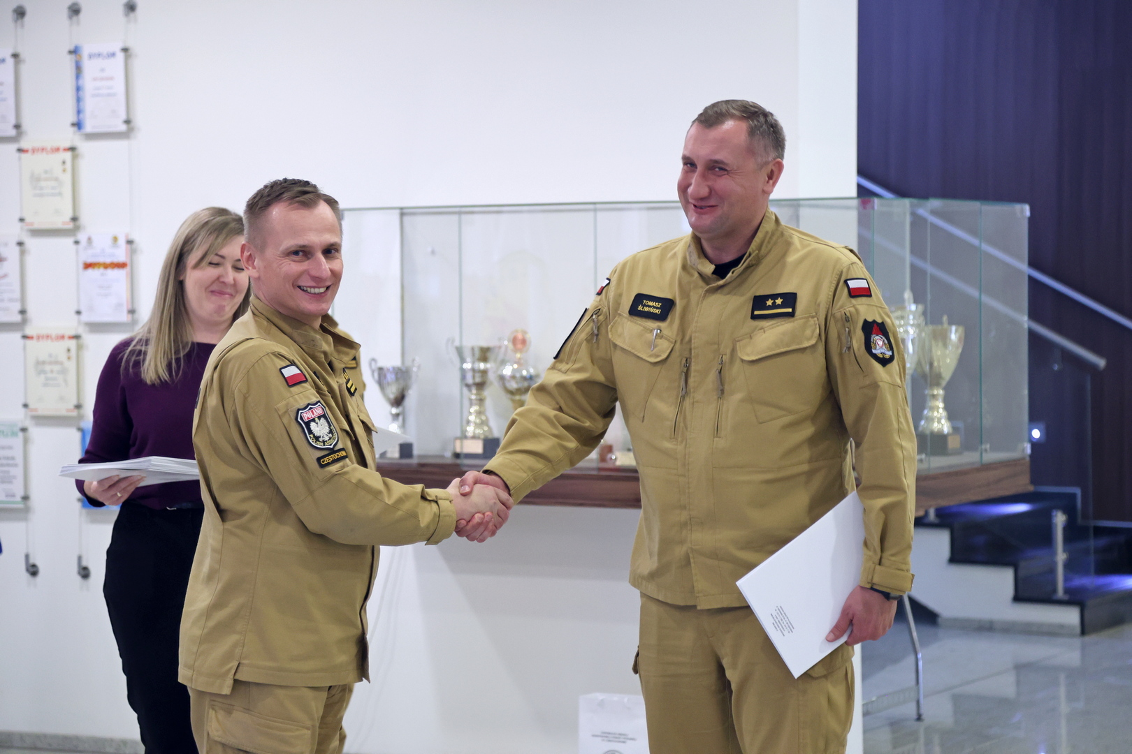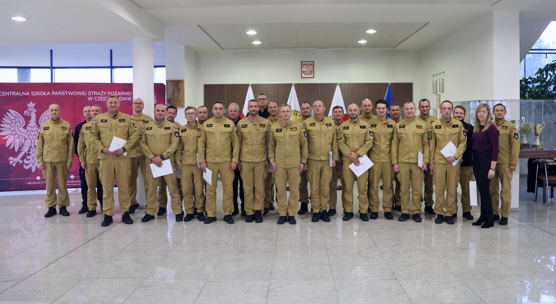 Na zakończenie wszyscy uczestnicy otrzymali zaświadczenia o ukończeniu przedmiotowego szkolenia. Zaświadczenia uczestnikom szkolenia wręczył Zastępca Komendanta Centralnej Szkoły PSP w Częstochowie st. bryg. dr Damian Hajdas w obecności: Naczelnika Wydziału Szkoleń Specjalistycznych i Współpracy Międzynarodowej – st. bryg. Bogumiła Zalewskiego oraz jego zastępcy mł. bryg. Arkadiusza Omazdy.
