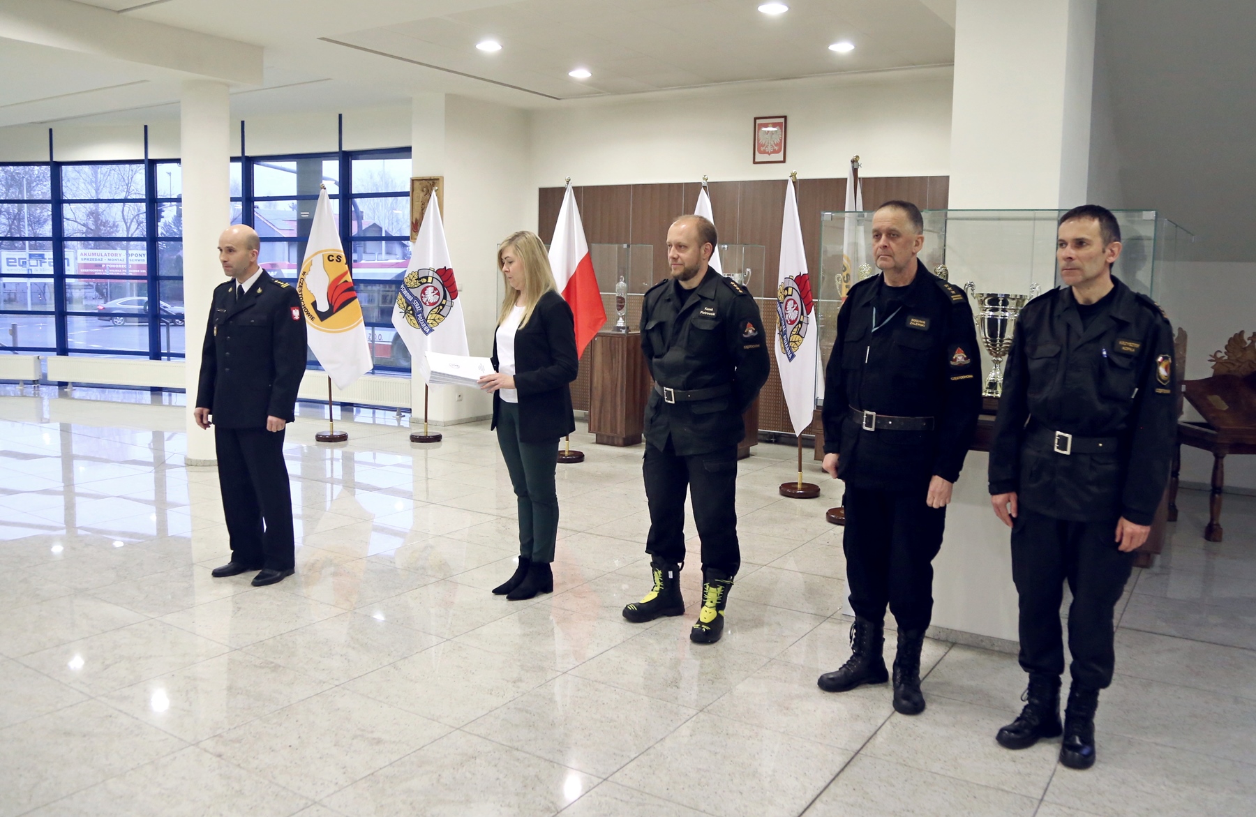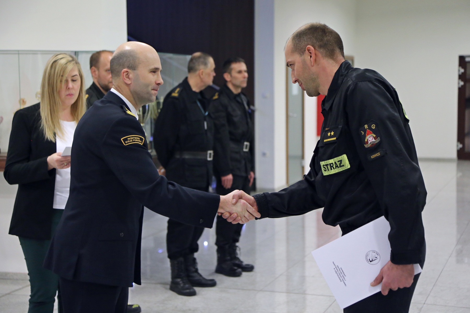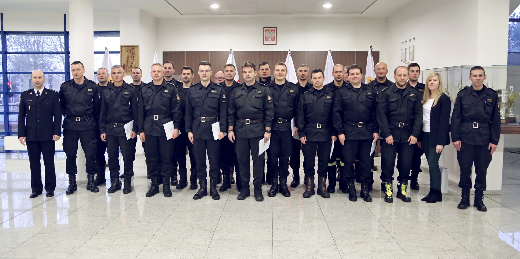 Na zakończenie wszyscy uczestnicy otrzymali zaświadczenia o ukończeniu przedmiotowego szkolenia. Zaświadczenia uczestnikom szkolenia wręczył Zastępca Komendanta Centralnej Szkoły PSP w Częstochowie st. bryg. Paweł Borówka w obecności: Naczelnika Wydziału Szkoleń Specjalistycznych i Współpracy Międzynarodowej - st. bryg. Bogumiła Zalewskiego, Naczelnika Wydziału Informatyki i Łączności - bryg. Krzysztofa Kopka oraz kierownika szkolenia - st. kpt. Kamila Piotrowskiego.