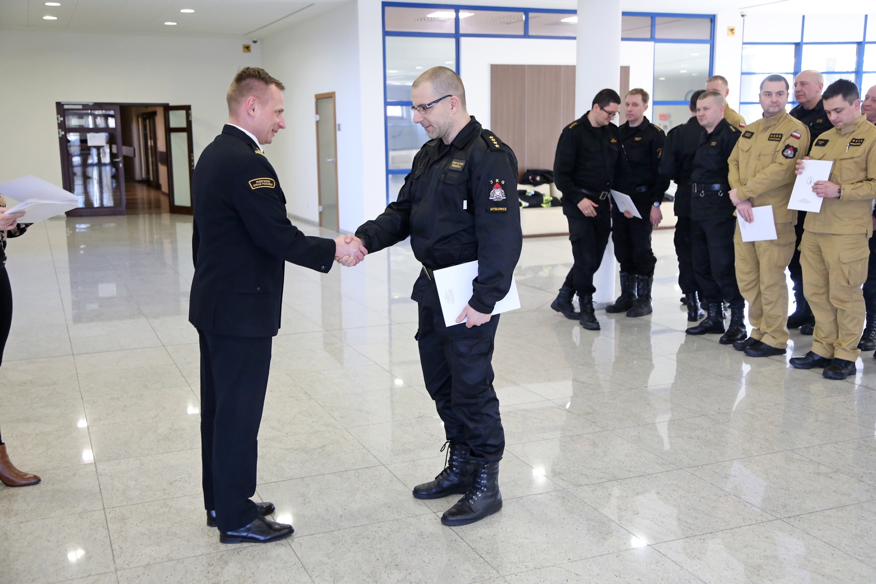 Zaświadczenia uczestnikom szkolenia wręczył Zastępca Komendanta Centralnej Szkoły PSP w Częstochowie st. bryg. Damian Hajdas w obecności Naczelnika Wydziału Szkoleń Specjalistycznych i Współpracy Międzynarodowej st. bryg. Bogumiła Zalewskiego, Naczelnika Wydziału Informatyki i Łączności – bryg. Krzysztofa Kopka oraz kierownika szkolenia – st. kpt. Kamila Piotrowskiego.