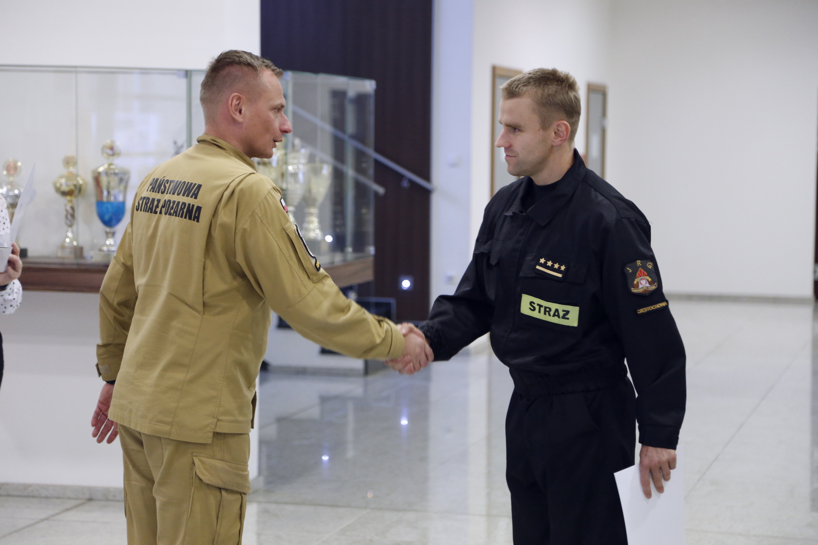Na zakończenie wszyscy uczestnicy otrzymali zaświadczenia o ukończeniu przedmiotowego szkolenia. Zaświadczenia uczestnikom szkolenia wręczył Zastępca Komendanta Centralnej Szkoły PSP w Częstochowie st. bryg. Damian Hajdas w obecności: Zastępcy Naczelnika Wydziału Szkoleń Specjalistycznych i Współpracy Międzynarodowej - mł. bryg. Arkadiusza Omazdy, kierownika szkolenia - mł. bryg. Kamila Piotrowskiego oraz przedstawicieli kadry wykładowczej CS PSP.