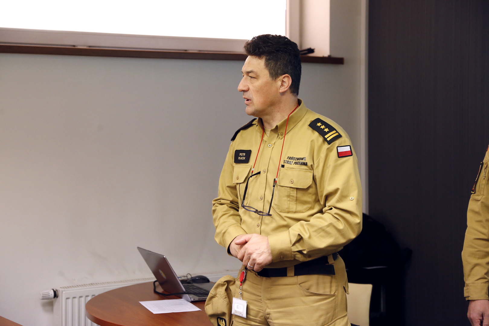 W pierwszym dniu zajęć uczestnicy szkolenia brali udział w praktycznych ćwiczeniach na poligonie szkolnym, weryfikując posiadaną wiedzę teoretyczną z praktyką i doświadczeniem. Dodatkowo obserwatorami ćwiczeń byli przedstawiciele Komend Wojewódzkich PSP z Katowic i Łodzi.