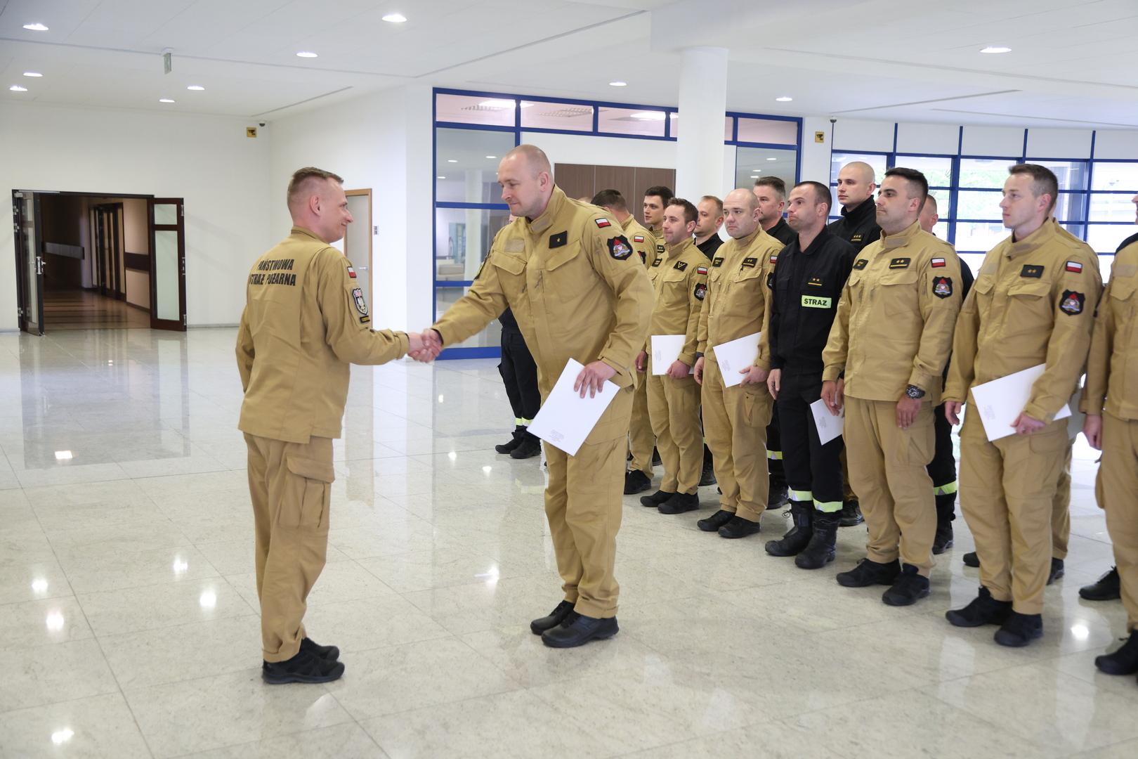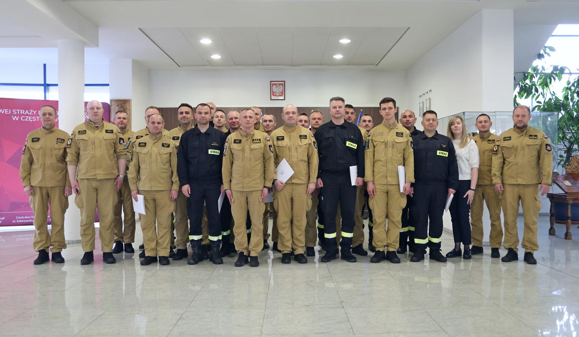Na zakończenie wszyscy uczestnicy otrzymali zaświadczenia o ukończeniu przedmiotowego szkolenia. Zaświadczenia uczestnikom szkolenia wręczył Zastępca Komendanta Centralnej Szkoły PSP w Częstochowie st. bryg. dr Damian Hajdas w obecności: Naczelnika Wydziału Szkoleń Specjalistycznych i Współpracy Międzynarodowej - st. bryg. Bogumiła Zalewskiego, kierownika szkolenia - mł. bryg. Kamila Piotrowskiego oraz przedstawicieli kadry wykładowczej CS PSP.