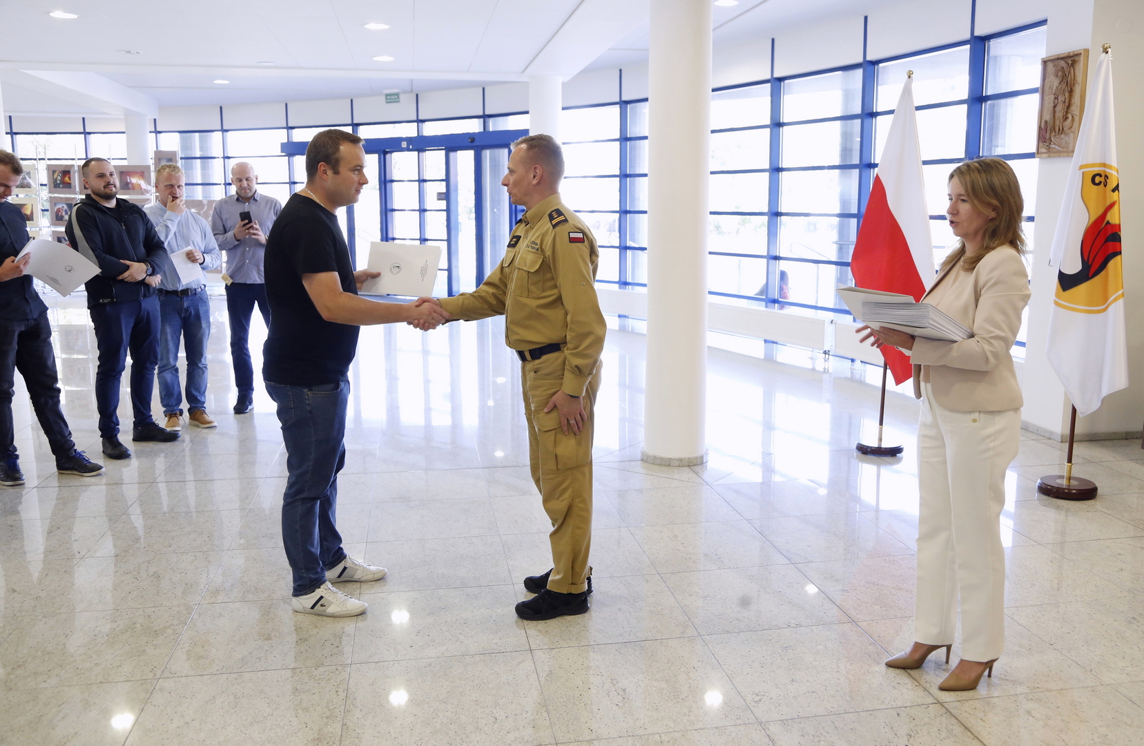 Zaświadczenia inspektora ochrony przeciwpożarowej wręczył Zastępca Komendanta Centralnej Szkoły PSP w Częstochowie st. bryg. Damian Hajdas w obecności Zastępcy Naczelnika Wydziału Szkoleń Specjalistycznych i Współpracy Międzynarodowej - mł. bryg. Arkadiusza Omazdy.
