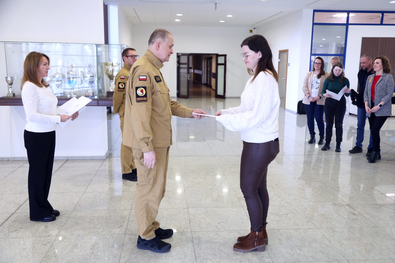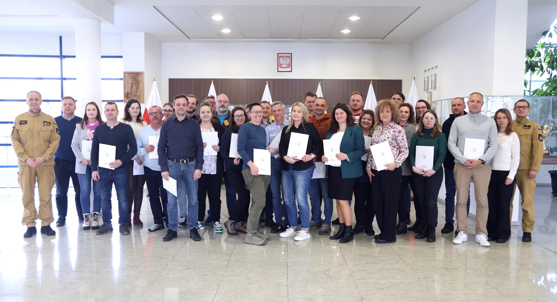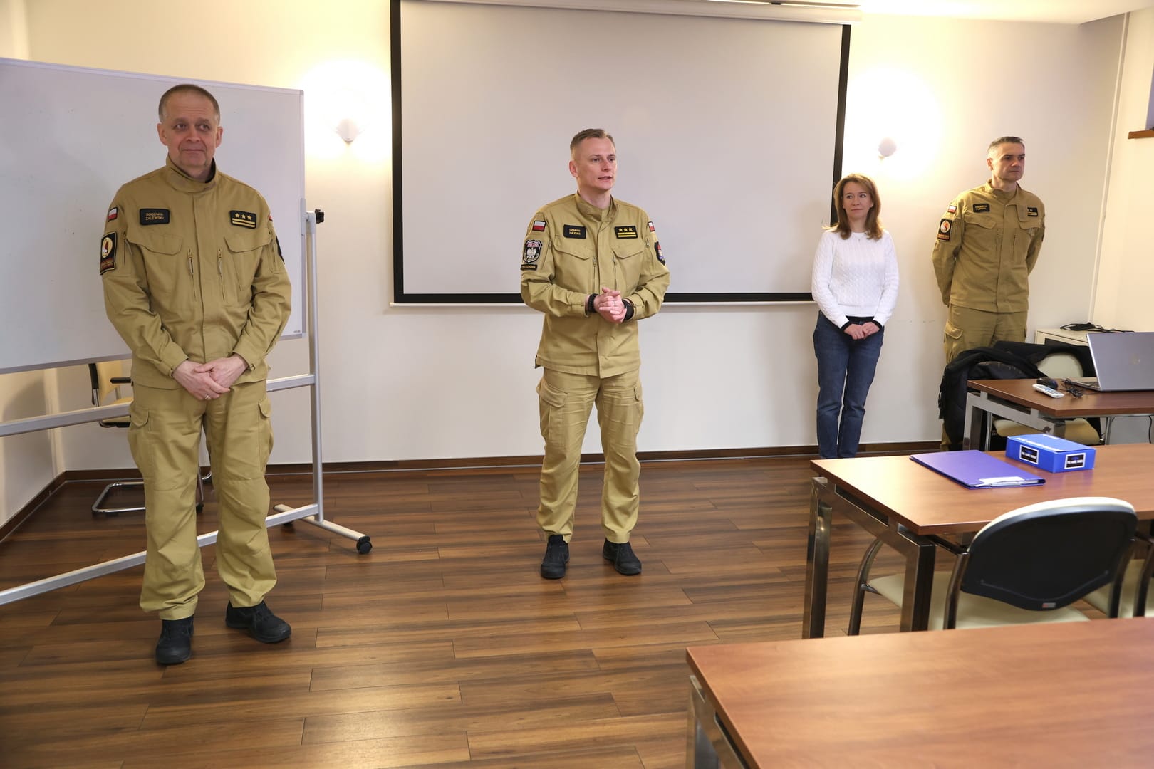 Zaświadczenia inspektora ochrony przeciwpożarowej zostały wręczone przez Naczelnika Wydziału Szkoleń Specjalistycznych i Współpracy Międzynarodowej, st. bryg. Bogumiła Zalewskiego, w obecności Zastępcy Naczelnika Wydziału Szkoleń Specjalistycznych i Współpracy Międzynarodowej, mł. bryg. Arkadiusza Omazdy.