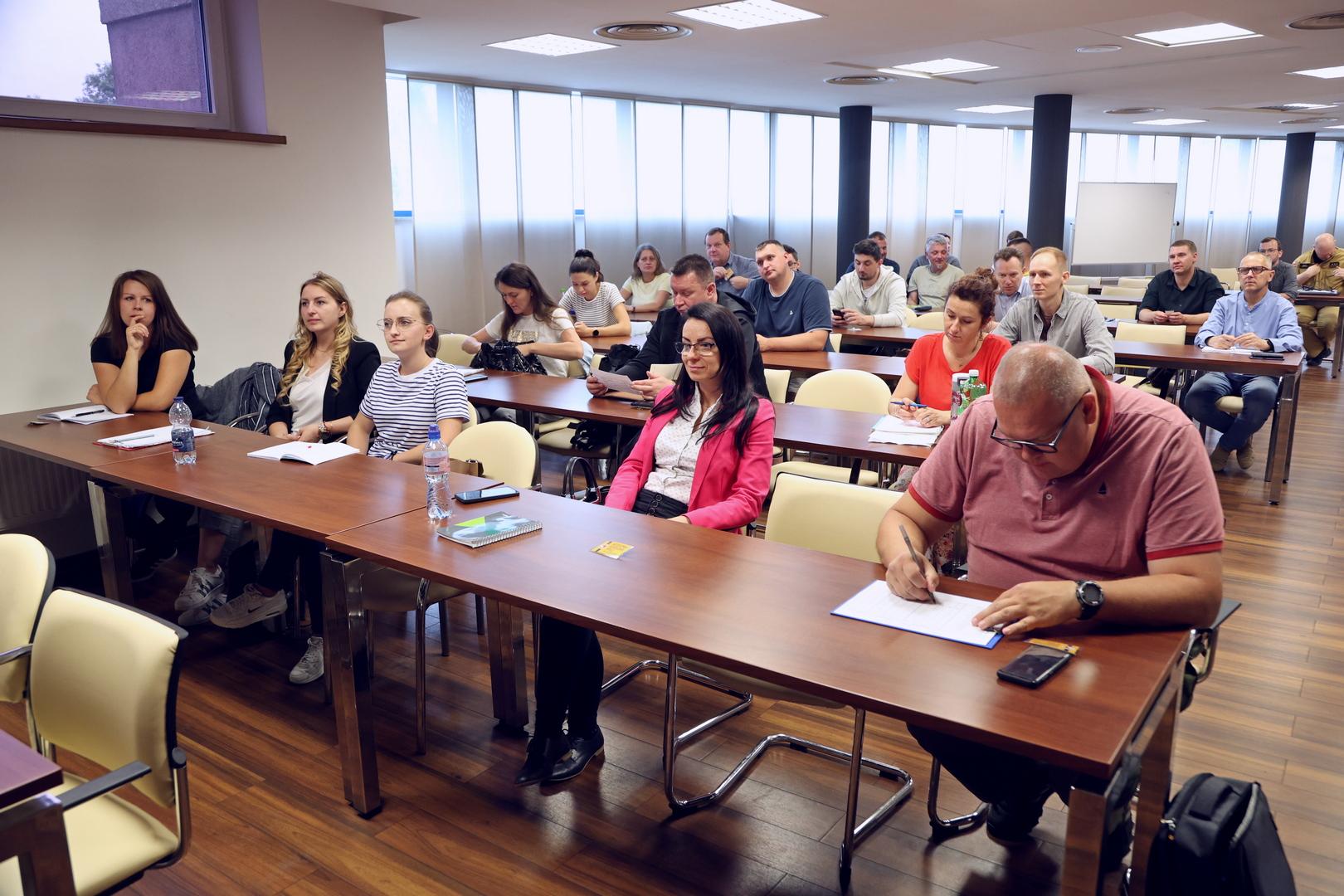 W pierwszym tygodniu szkolenia, od 20 do 24 maja 2024 r., uczestnicy przyswajali wiedzę teoretyczną przekazaną z wykorzystaniem metod i technik kształcenia na odległość w formie wykładów online, natomiast w dniach 10 - 12.06.2024 r. zostały przeprowadzone zajęcia praktyczne na terenie Centralnej Szkoły PSP w Częstochowie. Zajęcia odbywały się na szkolnym poligonie, w laboratoriach oraz w salach wykładowych. Grupa odwiedziła również halę sportową przy ul. Żużlowej w Częstochowie, w której zapoznano się z zabezpieczeniami przeciwpożarowymi.
