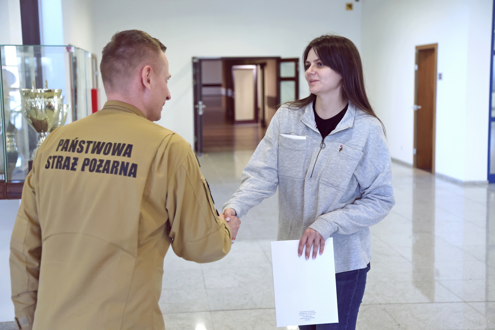 Zaświadczenia inspektora ochrony przeciwpożarowej wręczył Zastępca Komendanta Centralnej Szkoły PSP w Częstochowie st. bryg. dr Damian Hajdas w obecności przedstawicieli Wydziału Szkoleń Specjalistycznych i Współpracy Międzynarodowej: Naczelnika - st. bryg. Bogumiła Zalewskiego oraz Zastępcy Naczelnika - mł. bryg. Arkadiusza Omazdy.