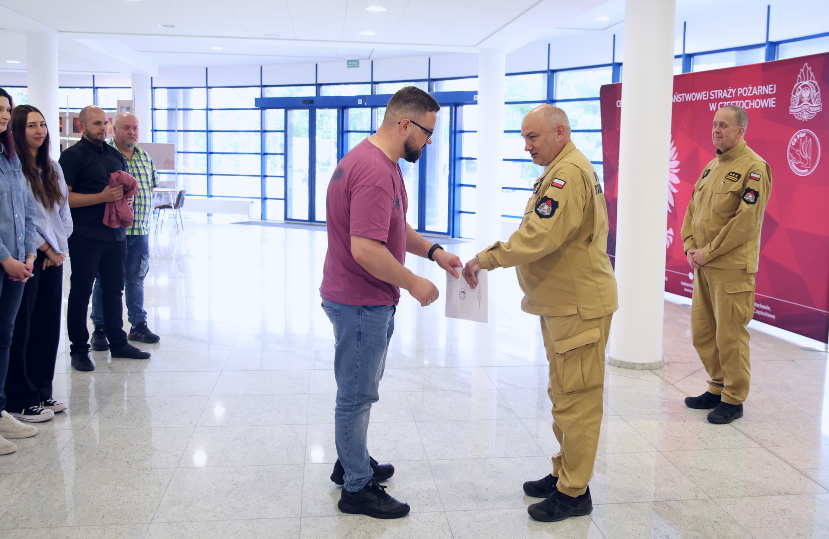 Zaświadczenia inspektora ochrony przeciwpożarowej wręczył Komendant Centralnej Szkoły PSP w Częstochowie st. bryg. Jarosław Jankowski w obecności Naczelnika Wydziału Szkoleń Specjalistycznych i Współpracy Międzynarodowej - st. bryg. Bogumiła Zalewskiego.