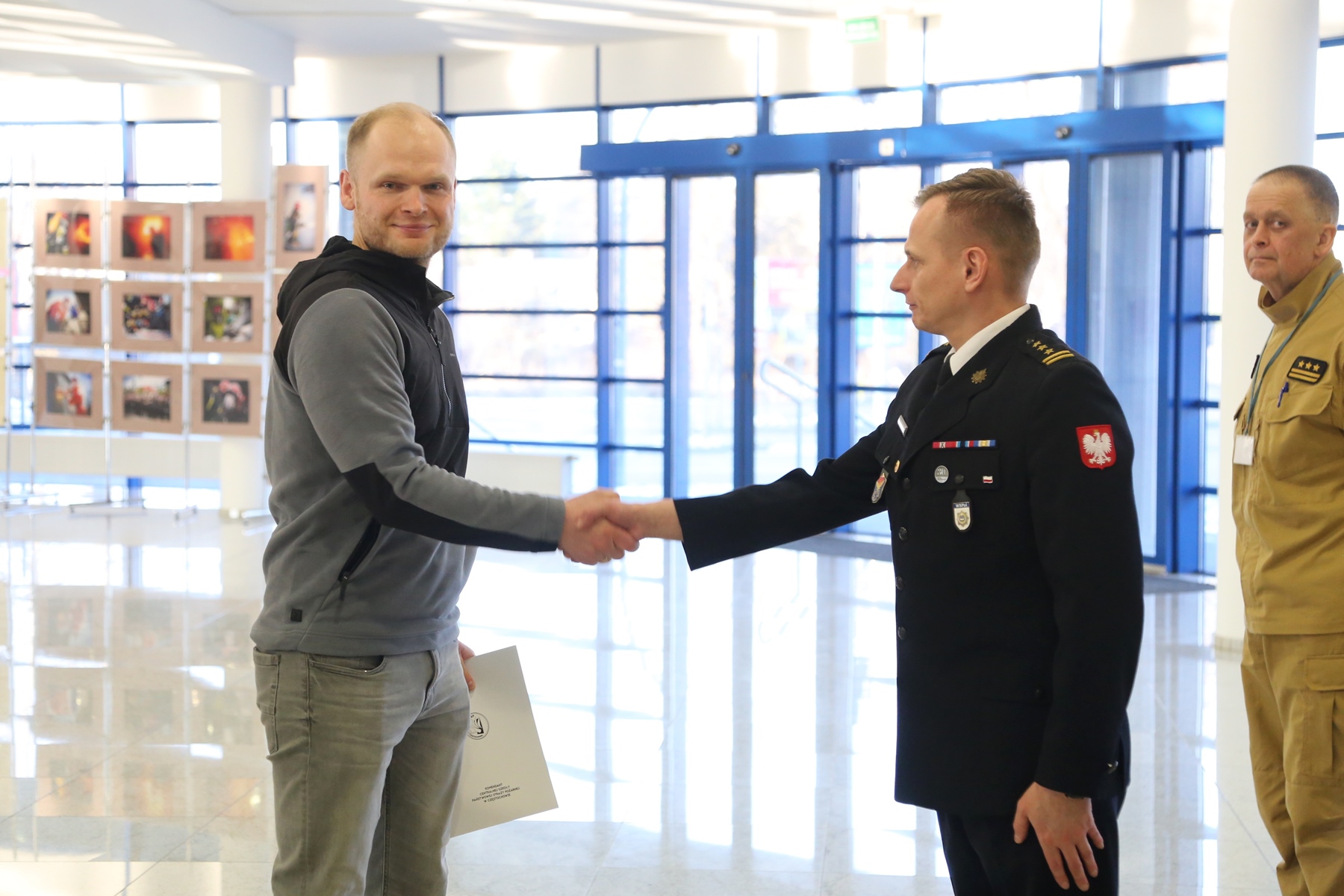 Zaświadczenia inspektora ochrony przeciwpożarowej wręczył Zastępca Komendanta Centralnej Szkoły PSP w Częstochowie st. bryg. Damian Hajdas w obecności Naczelnika Wydziału Szkoleń Specjalistycznych i Współpracy Międzynarodowej st. bryg. Bogumiła Zalewskiego oraz Zastępcy Naczelnika Wydziału Szkoleń Specjalistycznych i Współpracy Międzynarodowej mł. bryg. Arkadiusza Omazdy.