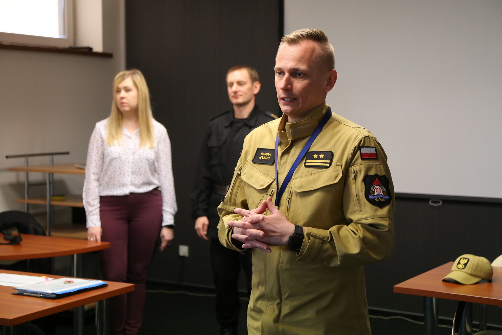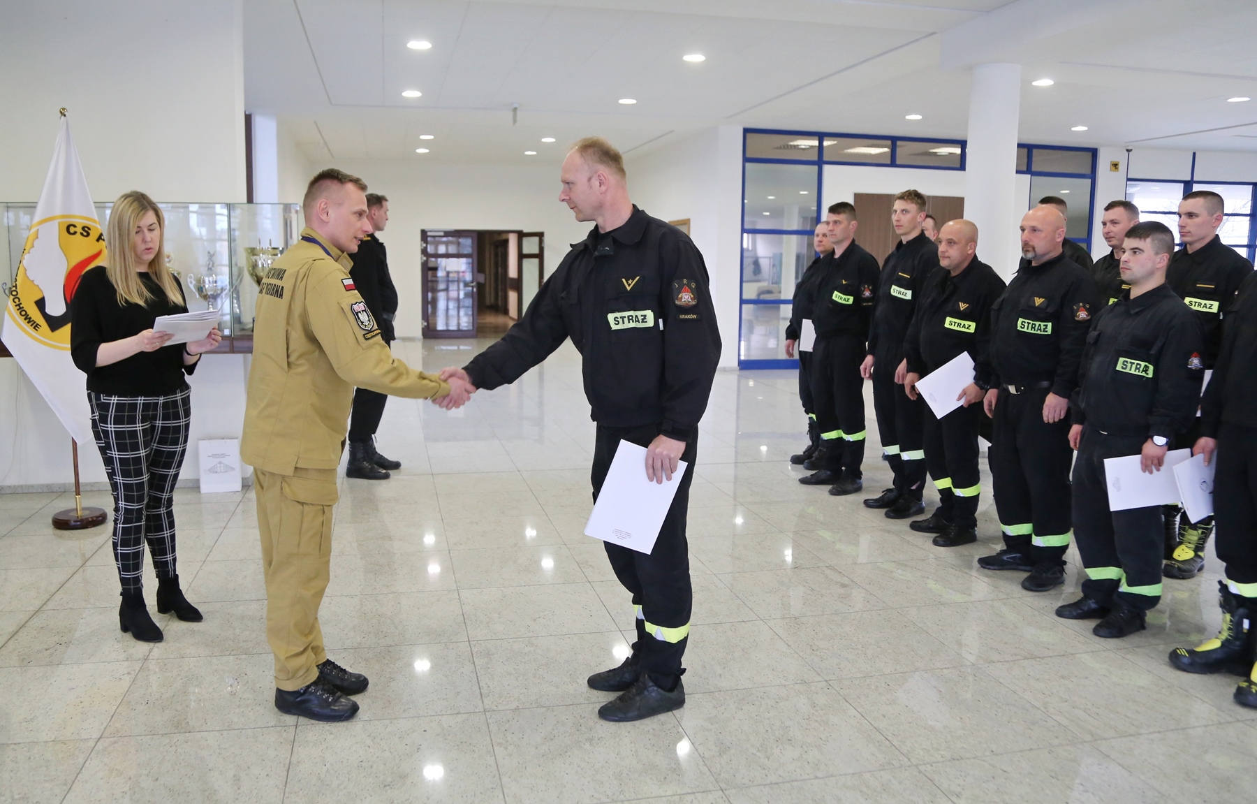 W uroczystości zakończenia udział wziął i wręczył stosowne zaświadczenia Zastępca Komendanta Centralnej Szkoły PSP bryg. Damian Hajdas w obecności Zastępcy Naczelnika Wydziału Szkoleń Specjalistycznych i Współpracy Międzynarodowej st. kpt. Arkadiusza Omazdy oraz Naczelnika Wydziału Technicznego bryg. Romana Ławińskiego.