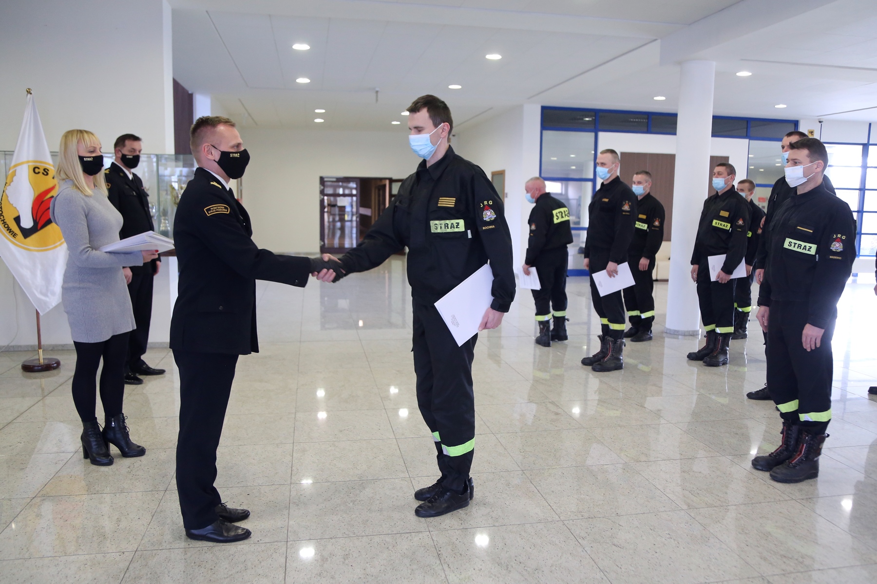 W uroczystości zakończenia udział wziął i wręczył stosowne zaświadczenia Zastępca Komendanta Centralnej Szkoły PSP bryg. Damian Hajdas w obecności Zastępcy Naczelnika Wydziału Szkoleń Specjalistycznych i Współpracy Międzynarodowej st. kpt. Arkadiusza Omazdy oraz Naczelnika Wydziału Technicznego bryg. Romana Ławińskiego.