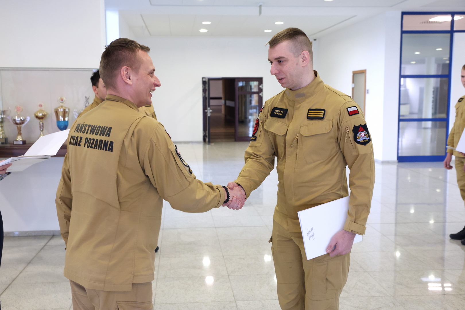 Zaświadczenia uczestnikom szkolenia wręczył Zastępca Komendanta Centralnej Szkoły PSP w Częstochowie st. bryg. dr Damian Hajdas w obecności: mł. bryg. Arkadiusza Omazdy - Zastępcy Wydziału Szkoleń Specjalistycznych i Współpracy Międzynarodowej, mł. bryg. Artura Wydry - Kierownika Zespołu Przedmiotowego i kierownika powyższego szkolenia oraz wykładowcy mł. kpt. Kamila Biały.