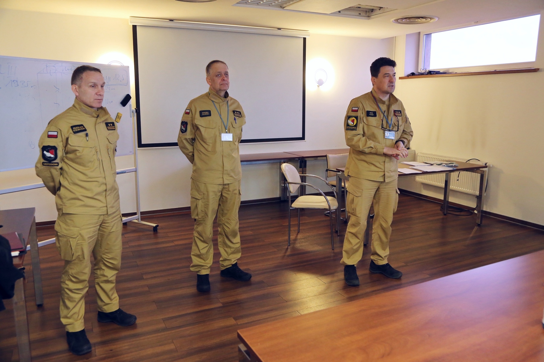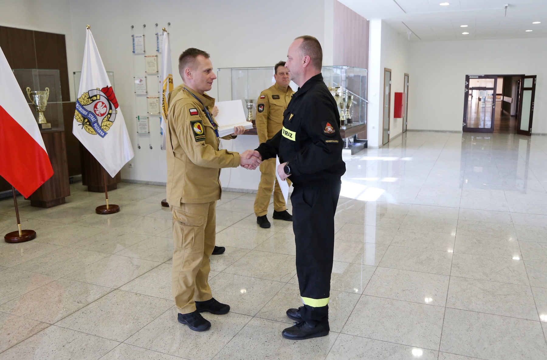 W uroczystości zakończenia udział wzięli również Naczelnik Wydziału Nauczania, kierownik szkolenia – st. bryg. Marek Poterek, Naczelnik Wydziału Szkoleń Specjalistycznych st. bryg. Bogumił Zalewski oraz zastępca Naczelnika Wydziału Szkoleń Specjalistycznych mł. bryg. Arkadiusz Omazda.