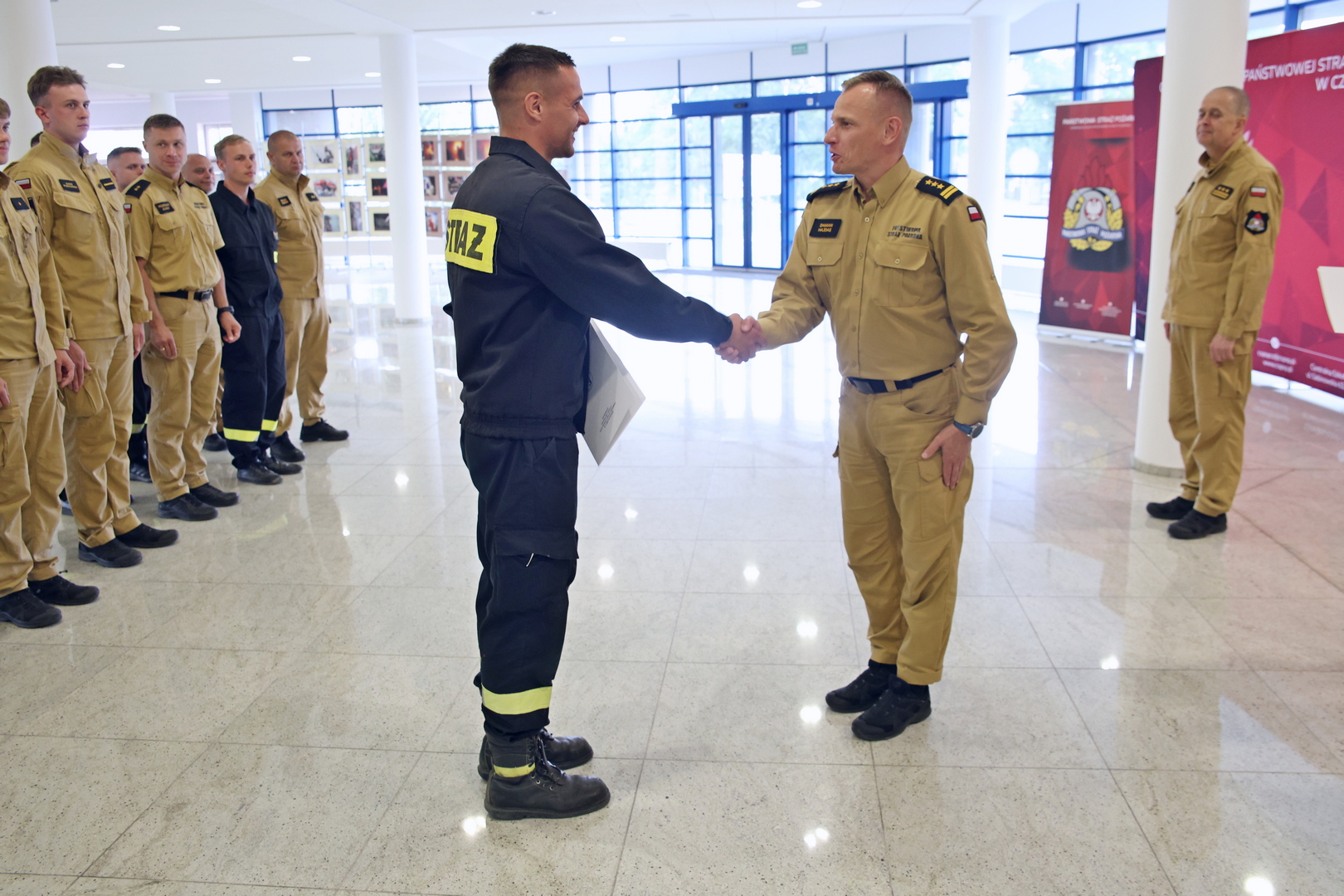 Zaświadczenia potwierdzające ukończenie szkolenia zostały wręczone uczestnikom przez Zastępcę Komendanta Centralnej Szkoły PSP st. bryg. dr. Damiana Hajdasa.