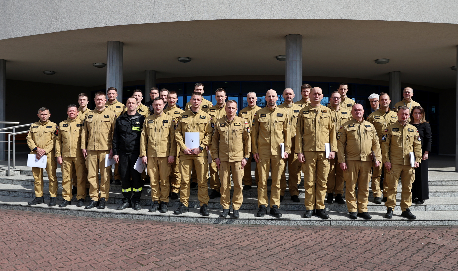 Zaświadczenia potwierdzające ukończenie przedmiotowego szkolenia uczestnikom wręczył Zastępca Komendanta Centralnej Szkoły PSP st. bryg. dr. Damian Hajdas w obecności Naczelnika Wydziału Szkoleń Specjalistycznych i Współpracy Międzynarodowej st. bryg. Bogumiła Zalewskiego oraz Wykładowcy Andrzeja Strzelca.