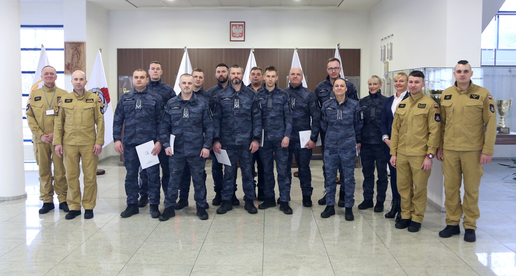 Na zakończenie Zastępca Komendanta Centralnej Szkoły PSP w Częstochowie st. bryg. Paweł Borówka w obecności Naczelnika Wydziału Szkoleń Specjalistycznych i Współpracy Międzynarodowej: st. bryg. Bogumiła Zalewskiego oraz wykładowców st. kpt. Artura Wydry i mł. asp. Kamila Białego wręczył uczestnikom zaświadczenia potwierdzające udział w szkoleniu.