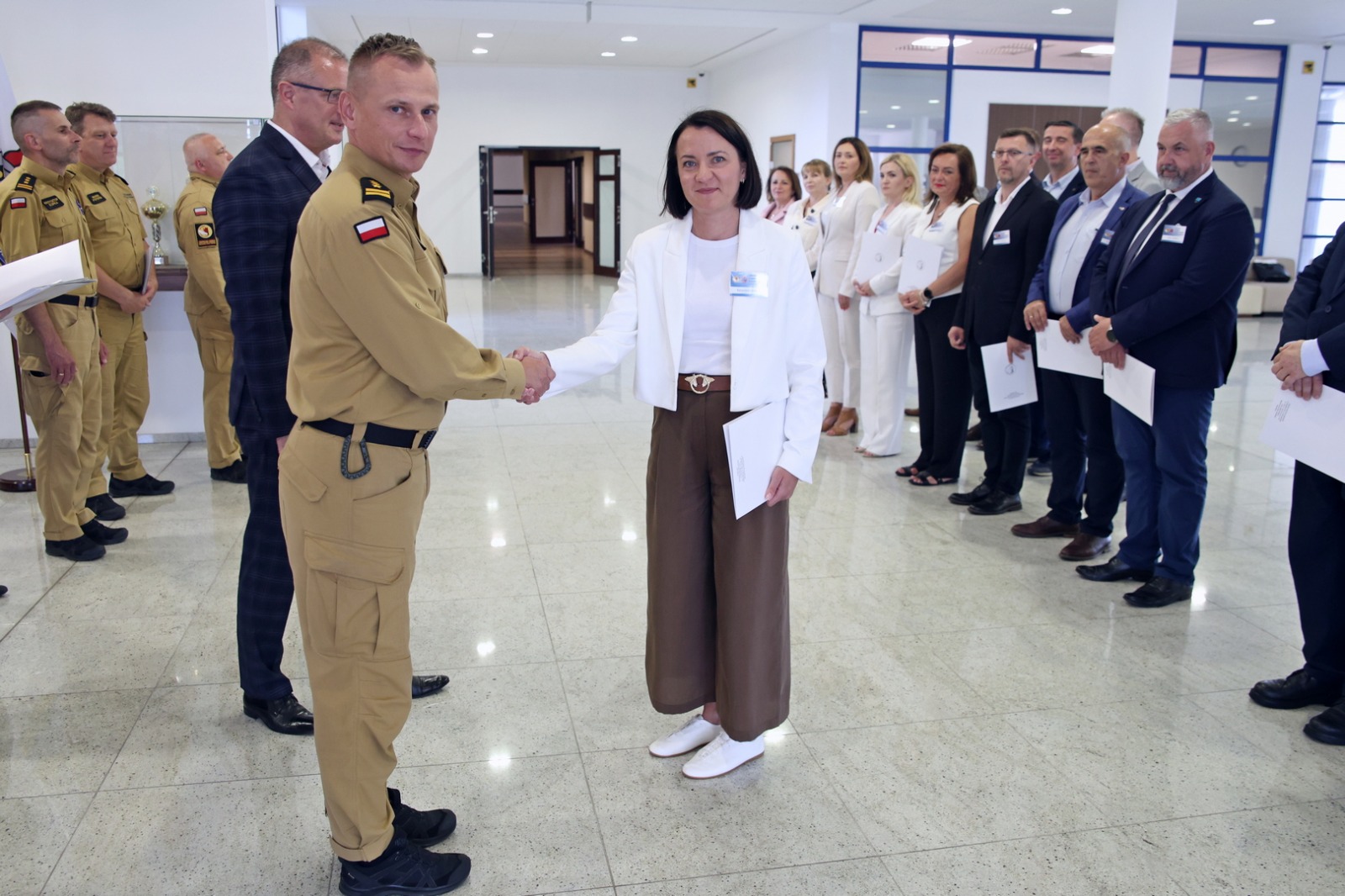 Uroczystego zakończenia i wręczenia stosowanych zaświadczeń dokonał Zastępca Komendanta Centralnej Szkoły PSP st. bryg. dr Damian Hajdas oraz Pan Grzegorz Mucha Dyrektor Wydziału Bezpieczeństwa i Zarządzania Kryzysowego Śląskiego Urzędu Wojewódzkiego w Katowicach.