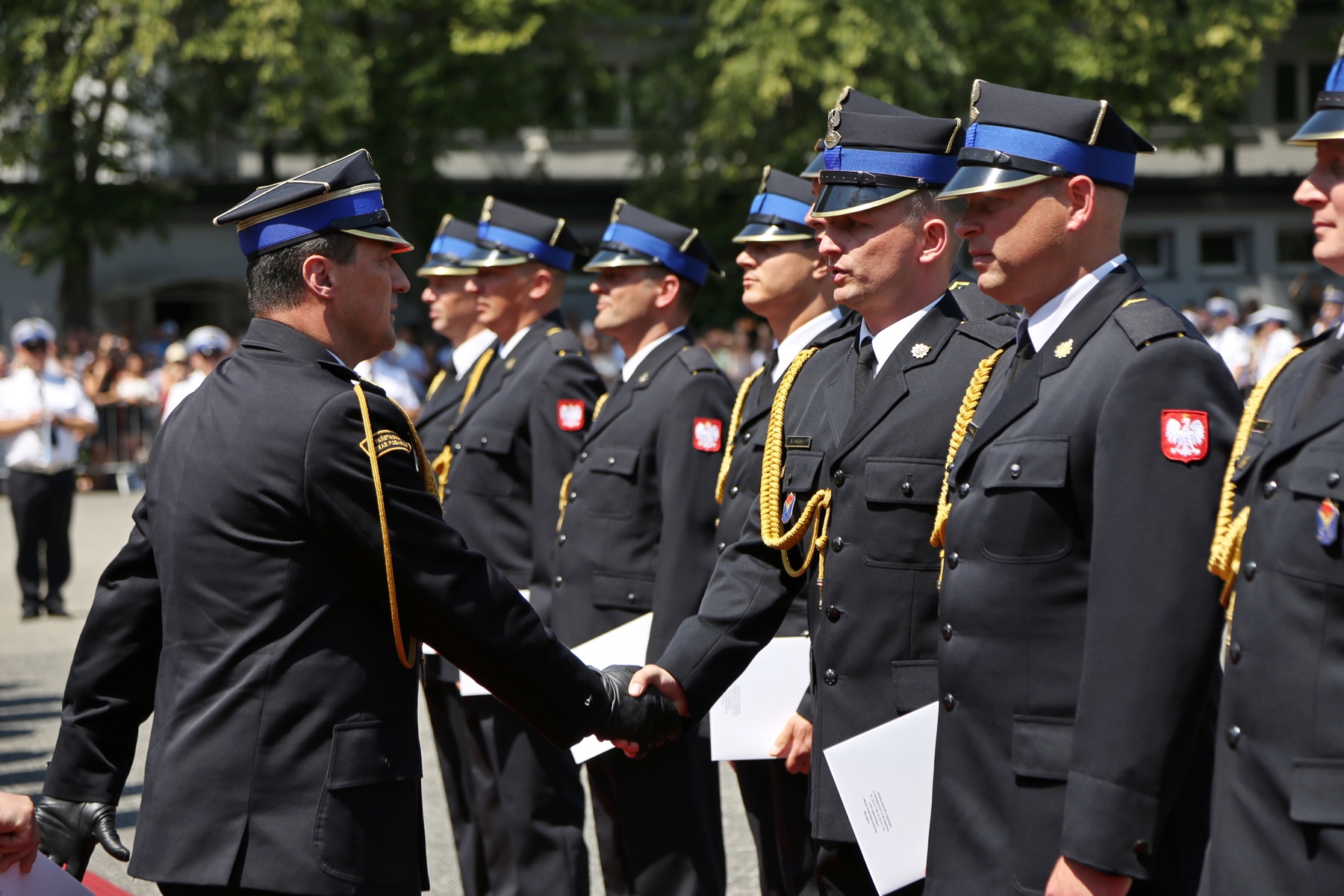 Komendant zaznaczył, że ważną rolę jaką pełni Centralna Szkoła w strukturach organizacyjnych PSP jest zasługą wszystkich pracowników Szkoły, bo to dzięki ich zaangażowaniu, na pożarniczej mapie Polski rozwija się Szkoła z wielkimi perspektywami i możliwościami. Zastępca Komendanta Głównego PSP pogratulował wszystkim promowanym i wyraził słowa uznania dla hartu ducha zebranych strażaków, którzy w niedługim czasie staną się wizytówką Państwowej Straży Pożarnej.