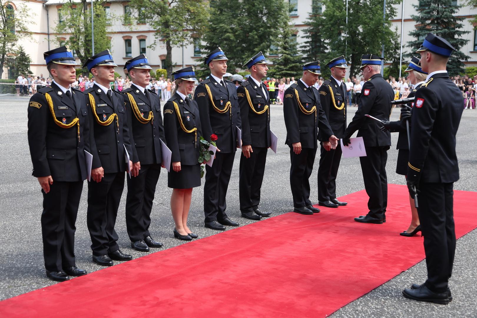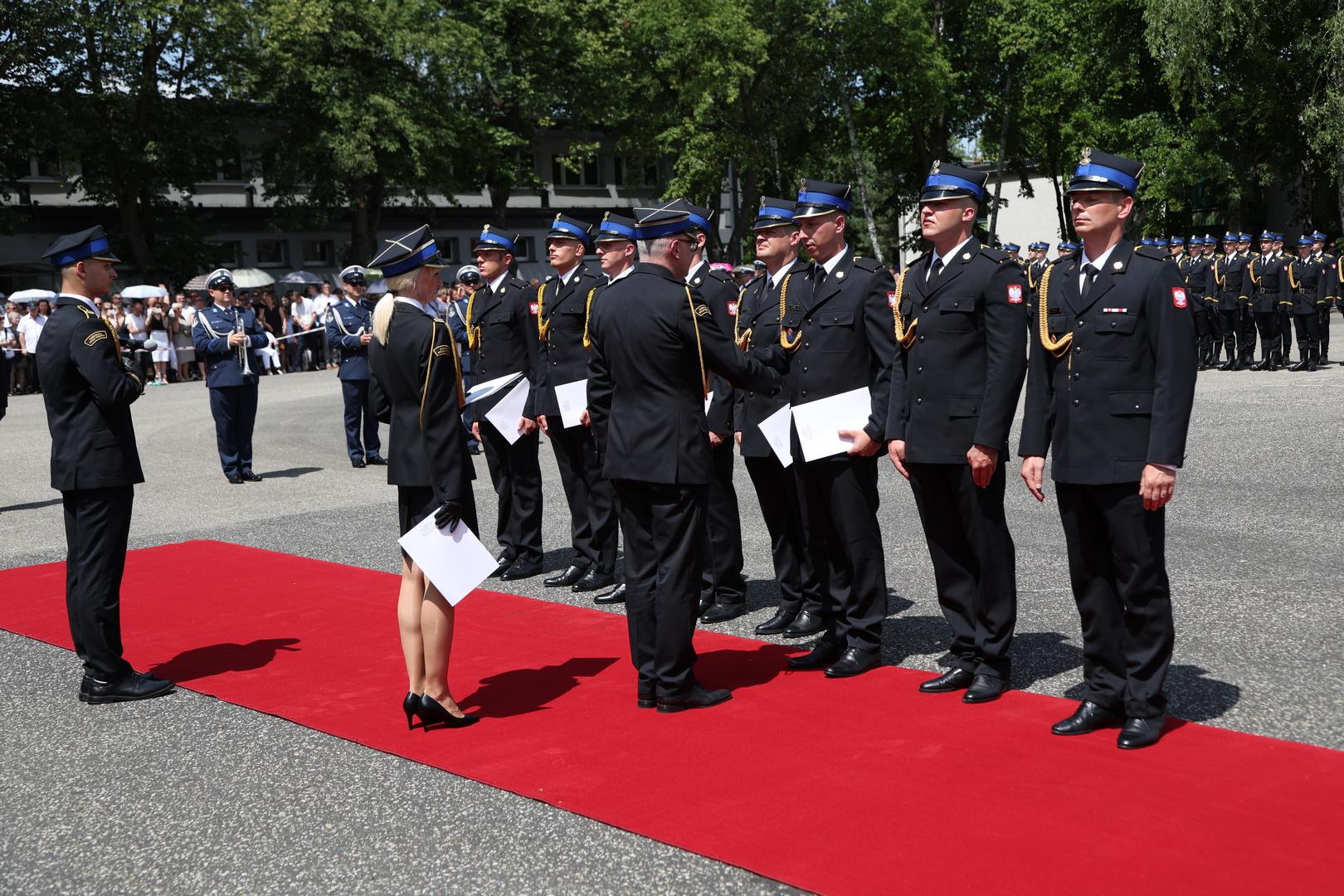 Absolwentom nominację na stopień młodszego aspiranta wręczył Zastępca Komendanta Głównego Państwowej Straży Pożarnej st. bryg. Paweł Frysztak.
