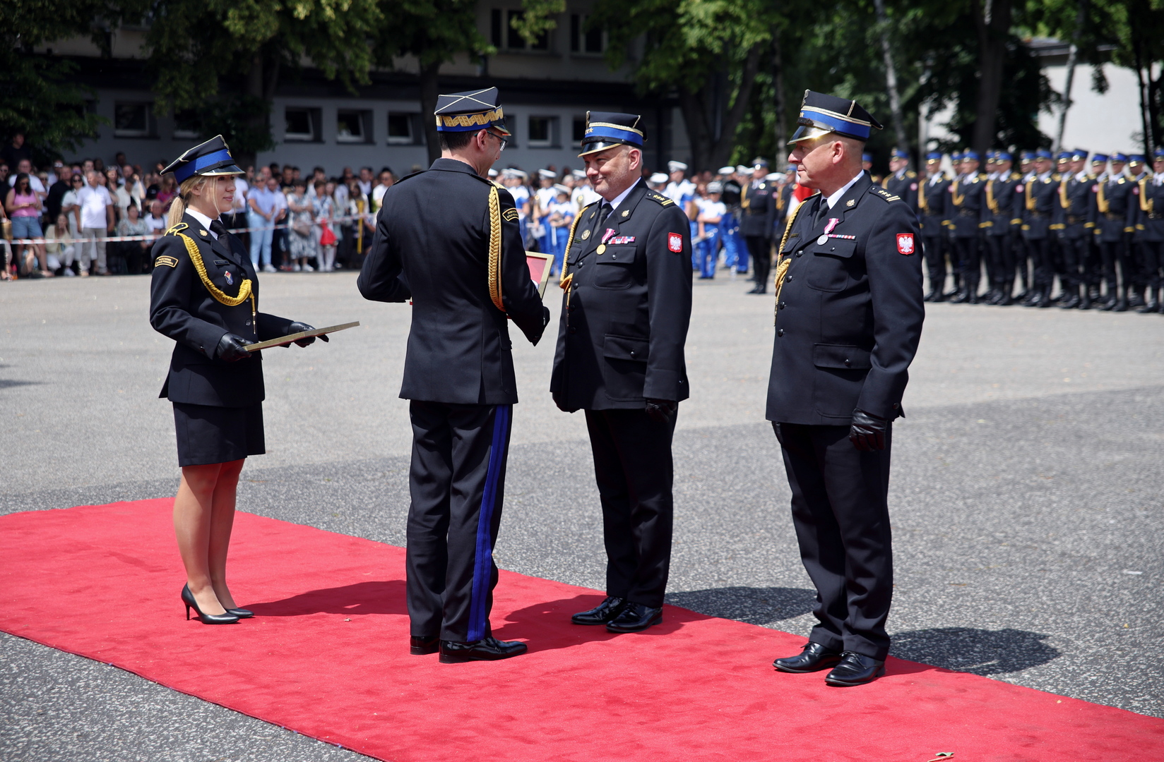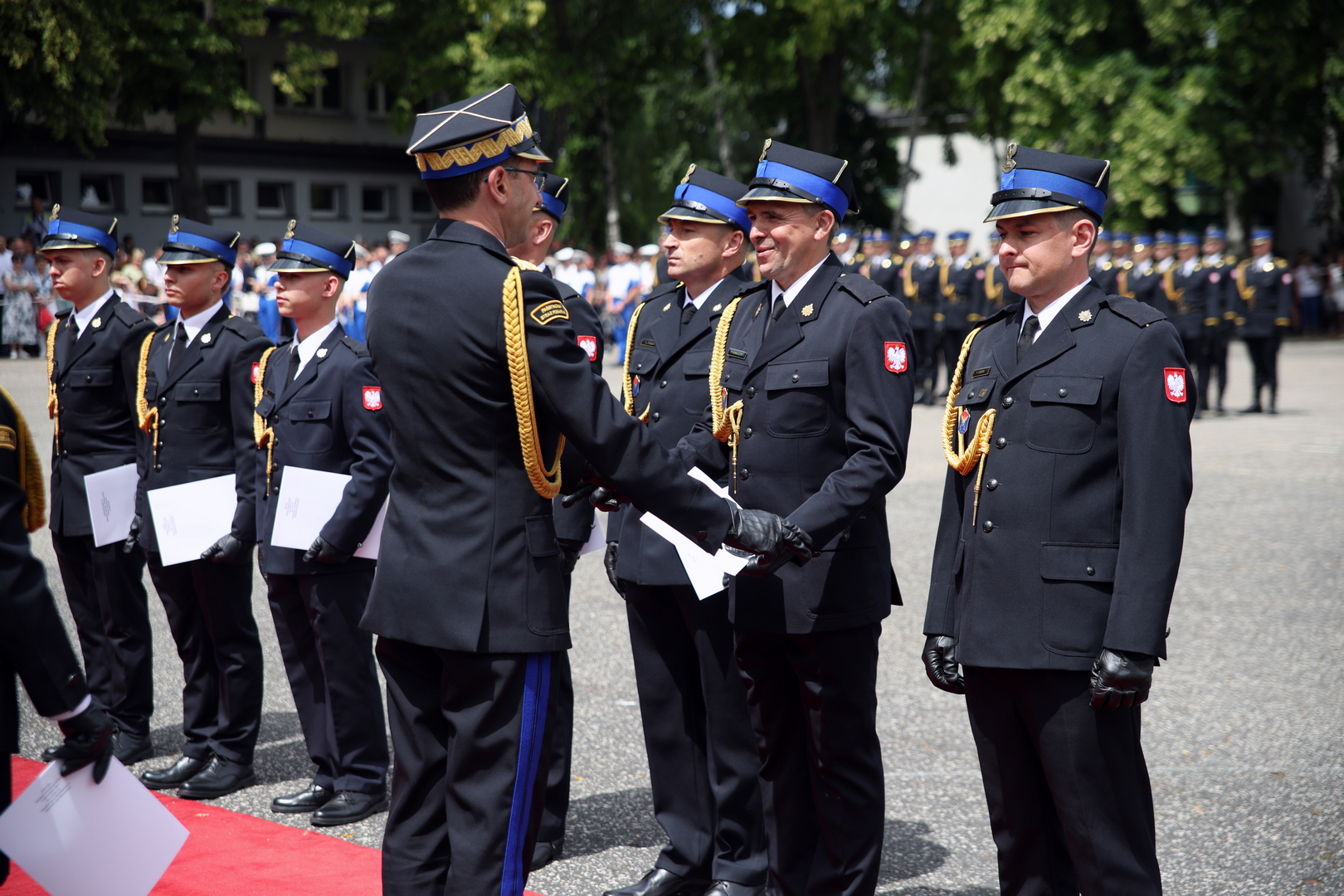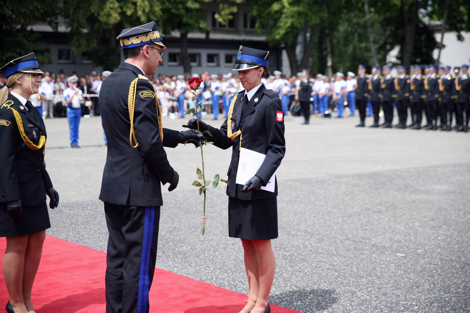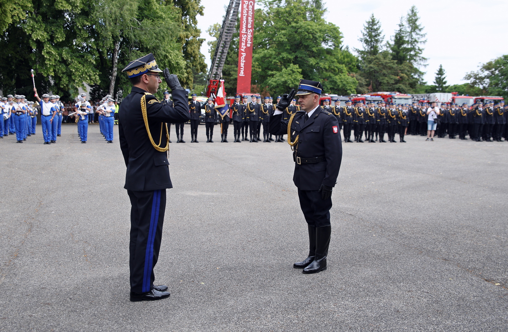 Absolwentom nominację na stopień młodszego aspiranta wręczył Komendant Główny Państwowej Straży Pożarnej nadbryg. Wojciech Kruczek.