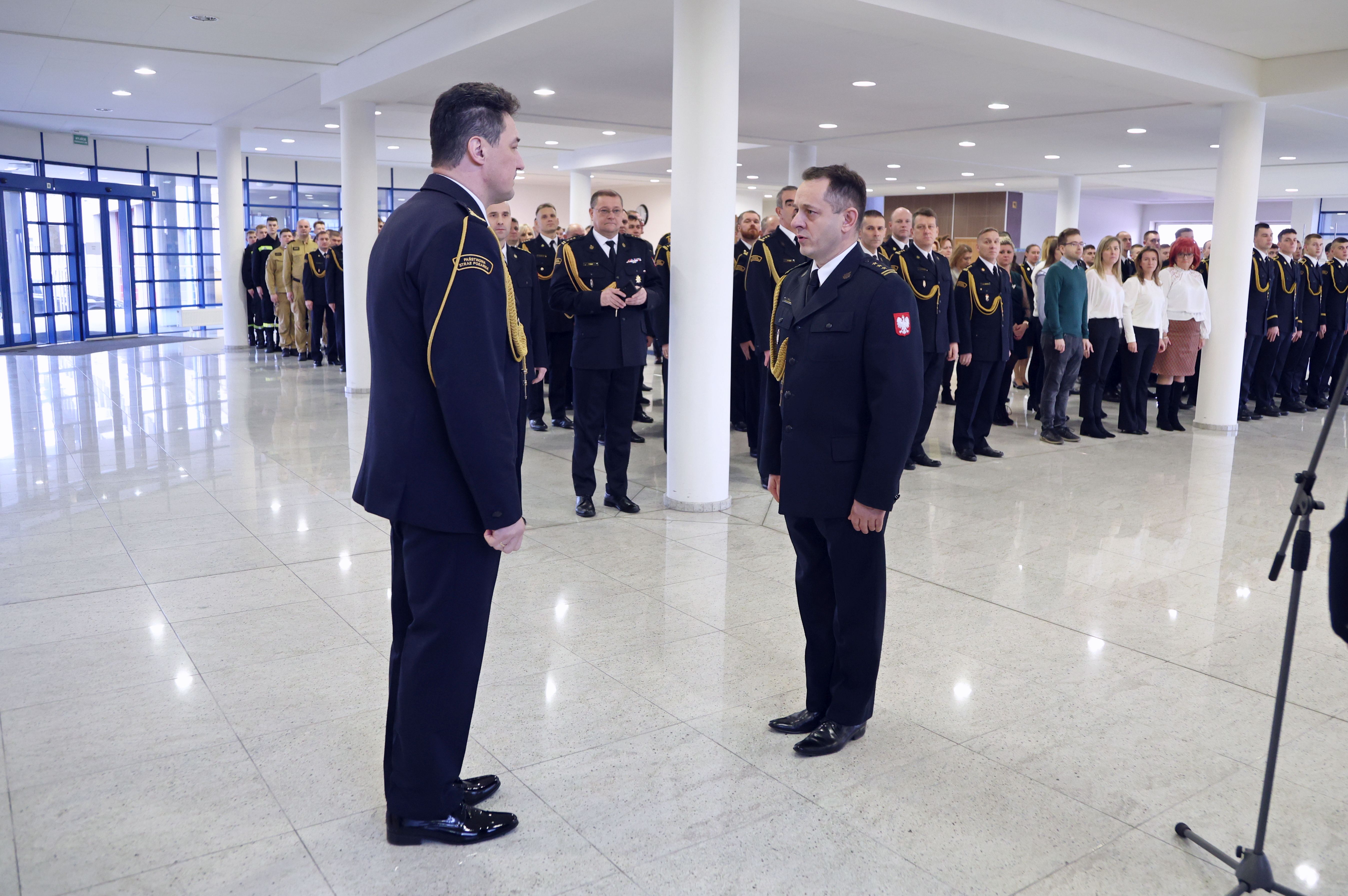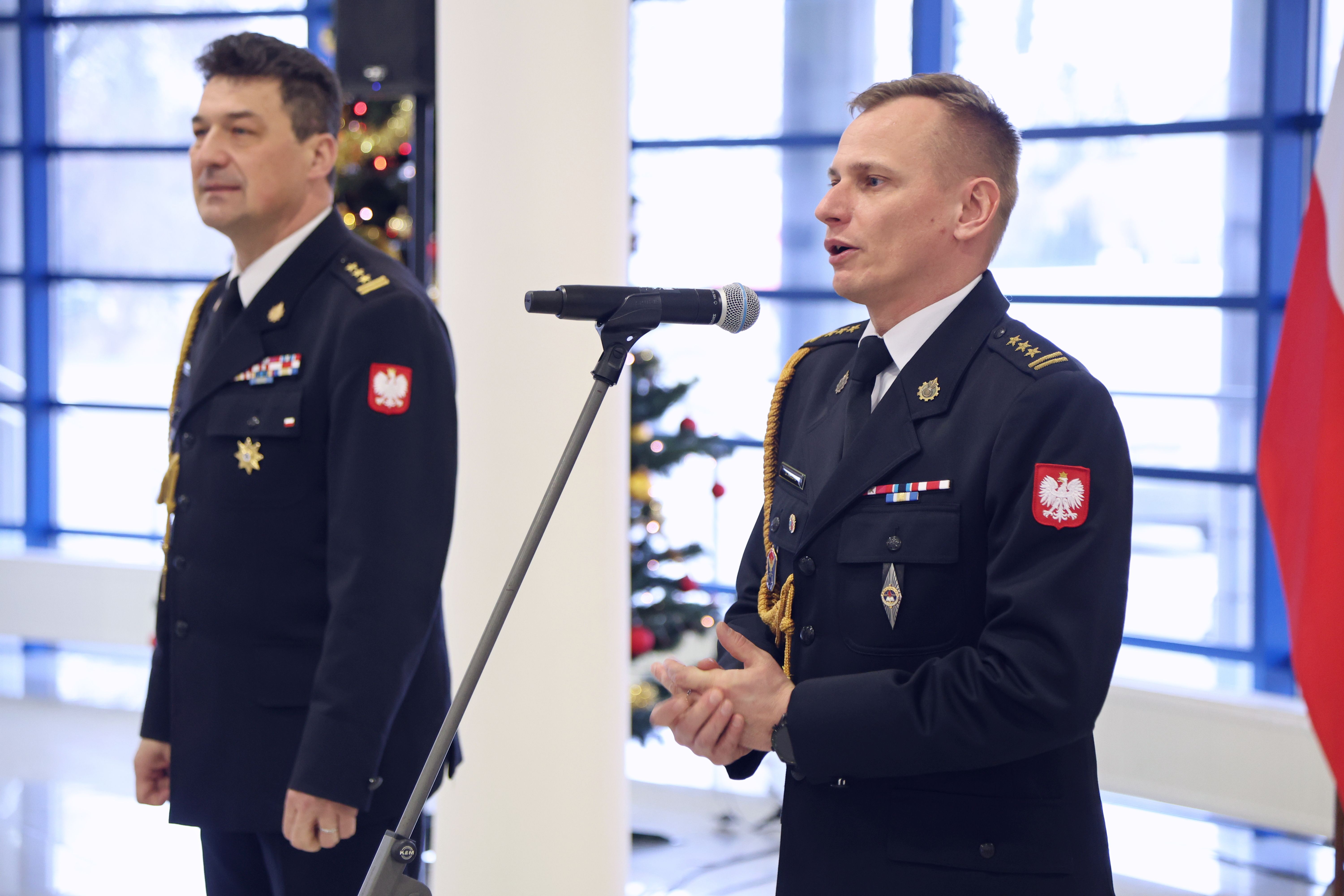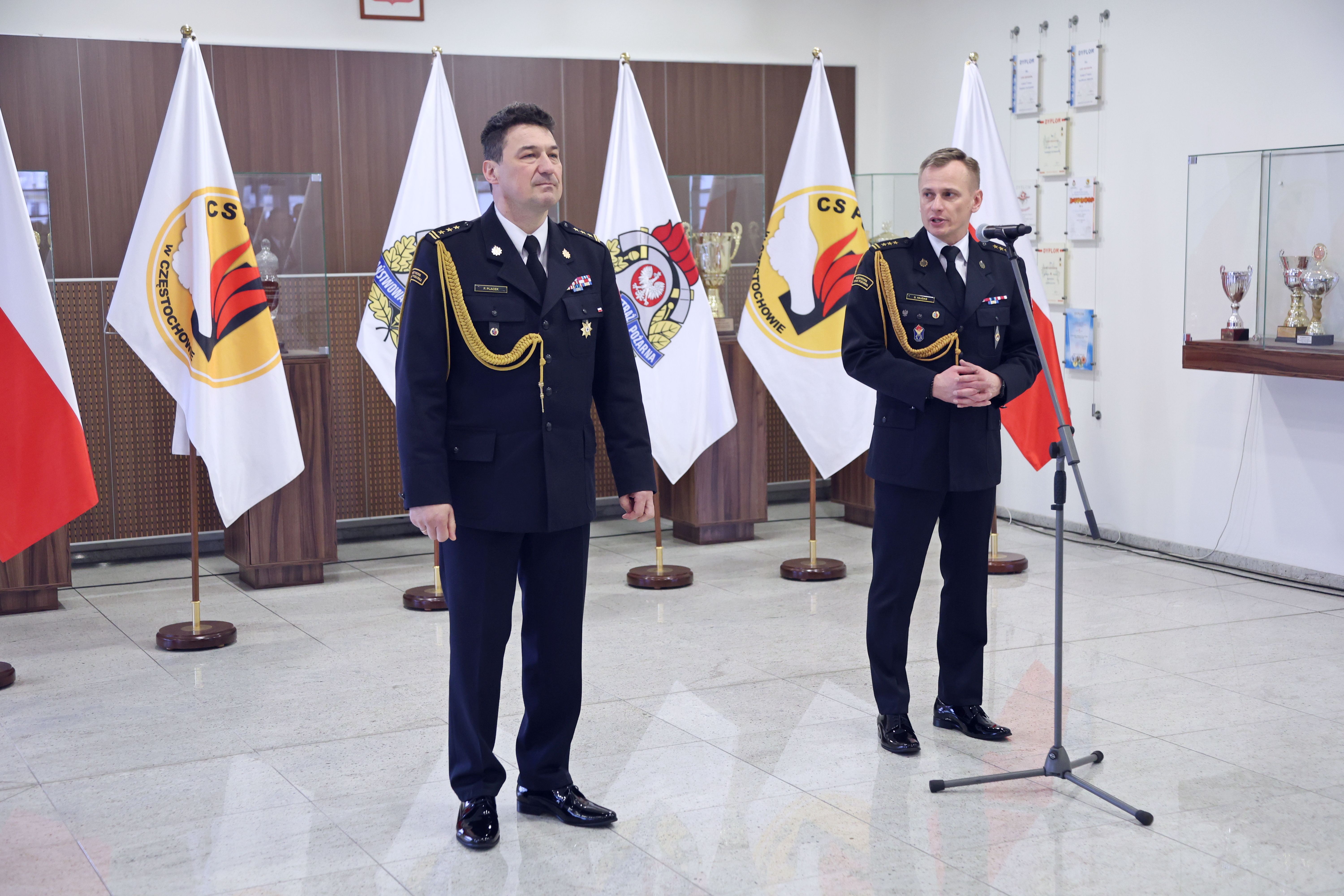 W imieniu wszystkich pracowników oraz własnym Zastępca Komendanta Centralnej Szkoły PSP st. bryg. dr Damian Hajdas, któremu Decyzją Komendanta Głównego PSP od dnia 6 stycznia 2024 r. powierzono obowiązki Komendanta Szkoły, złożył serdeczne słowa podziękowania za wieloletnią służbę w Centralnej Szkole oraz wyraził słowa uznania za wysiłek i wkład włożony na rzecz jej rozwoju: „Dziś przechodzi na emeryturę komendant, a przede wszystkim nasz wspólny kolega, który wniósł swój osobisty wkład w odpowiednie funkcjonowanie i rozwój Centralnej Szkoły PSP w Częstochowie. Piotr starał się robić wszystko, by Szkoła była przyjaznym miejscem pracy dla nas jako pracowników i nauki dla kadetów w atmosferze wspólnego szacunku i zrozumienia”.