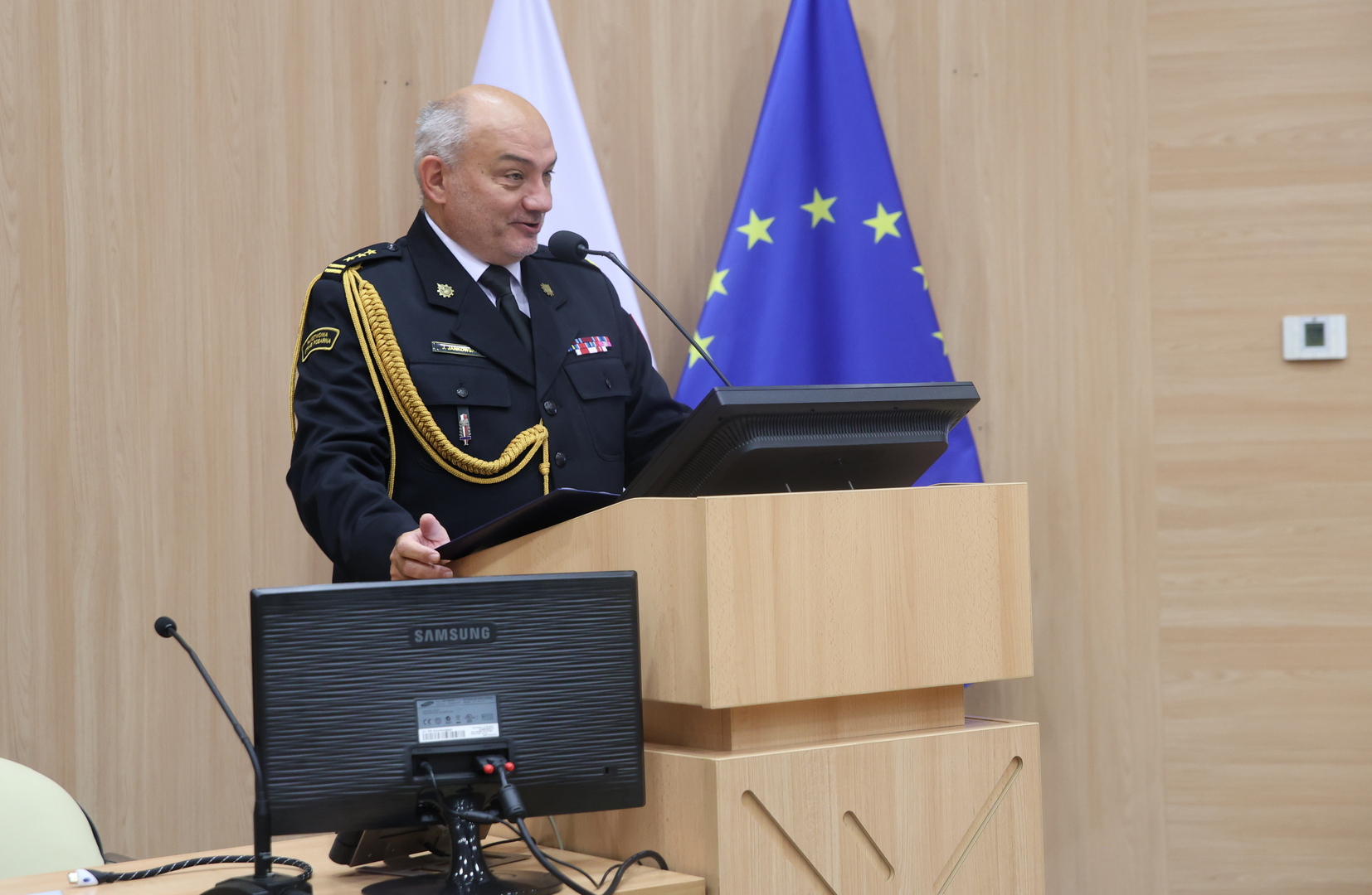 St. bryg. Jarosław Jankowski podkreślił, że trwa okres kształcenia, podczas którego nasi uczniowie zdobędą wiedzę teoretyczną i praktyczną oraz profesjonalne przygotowanie w zawodzie strażaka Państwowej Straży Pożarnej, w którym przyjdzie pełnić im służbę.