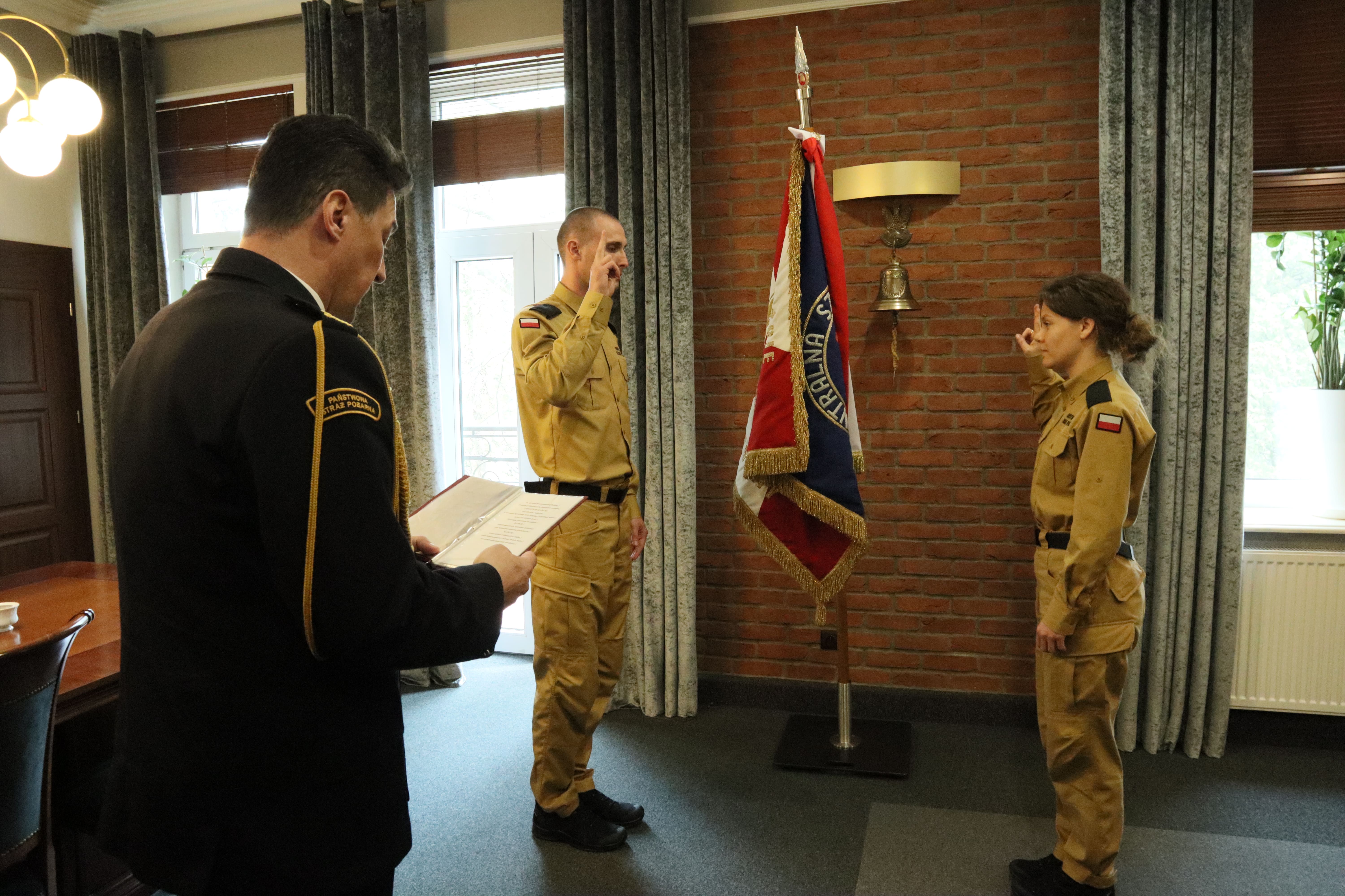 Uroczyste ślubowanie strażaka Marty Bigdy i Tomasza Porębińskiego