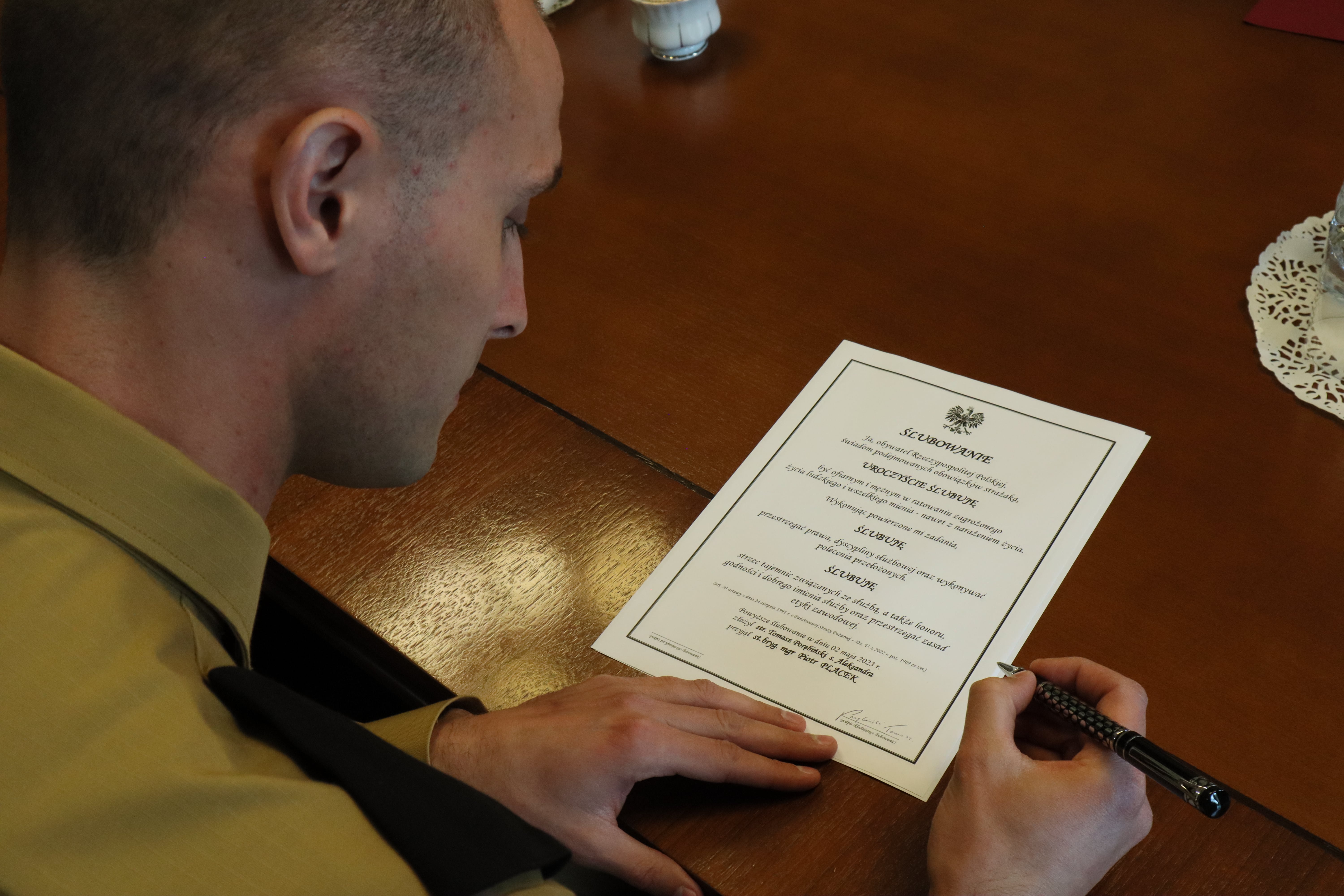 świadom podejmowanych obowiązków strażaka,