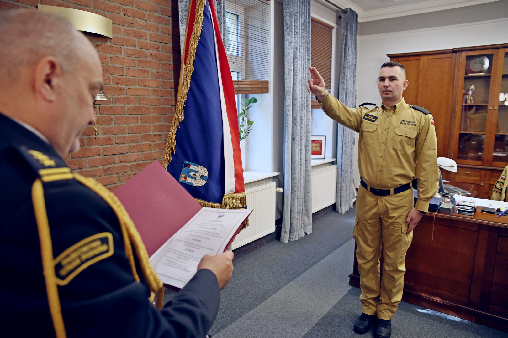 Uroczyste ślubowanie strażaka Piotra Suchańskiego