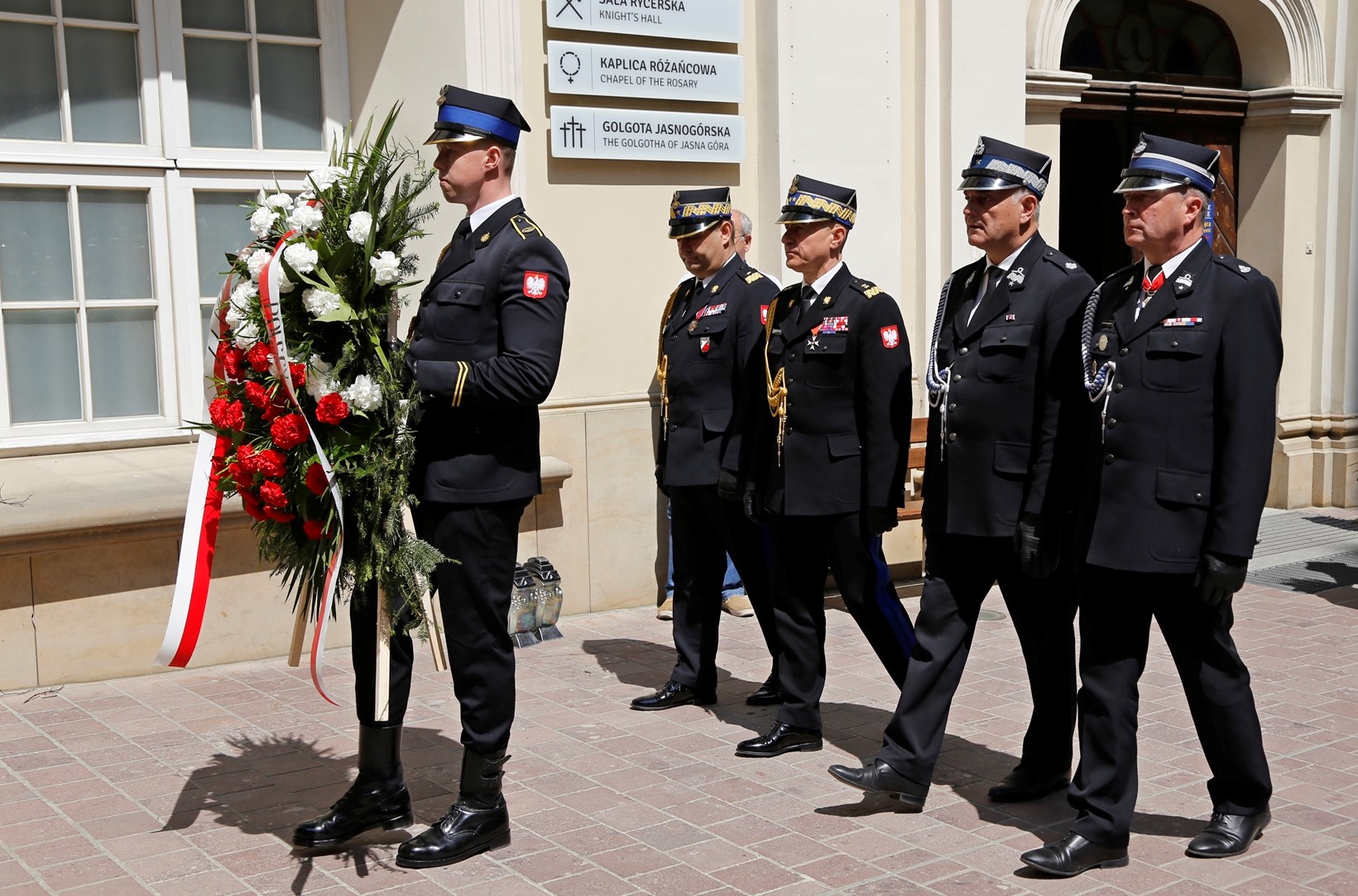 Posterunki honorowe pełniły wartę przy pomniku Marszałka Józefa Piłsudskiego na Placu Biegańskiego, pomniku księdza Jerzego Popiełuszki, pomniku Nieznanego Żołnierza oraz pomniku kardynała Stefana Wyszyńskiego na szczycie jasnogórskim. Warta składała się z dwóch strażaków PSP i dwóch strażaków OSP. Wartę przy pomniku kardynała Stefana Wyszyńskiego wystawiła Kompania Reprezentacyjna CS PSP w Częstochowie. Z ramienia PSP wartę przy pomniku Marszałka Józefa Piłsudskiego, pomniku księdza Jerzego Popiełuszki i pomniku Nieznanego Żołnierza wystawiła Kompania Reprezentacyjna KW PSP w Katowicach. Komendanci Szkół PSP, dyrektor Centralnego Muzeum Pożarnictwa w Mysłowicach złożyli wieniec przy pomniku ks. Jerzego Popiełuszki, śląski komendant wojewódzki PSP wraz z zastępcami oraz prezesem Zarząd Oddziału Wojewódzkiego ZOSP RP w Katowicach złożyli wieniec przy pomniku Nieznanego Żołnierza, a przy pomniku kardynała Stefana Wyszyńskiego wieniec złożyli kapelani Straży Pożarnej.