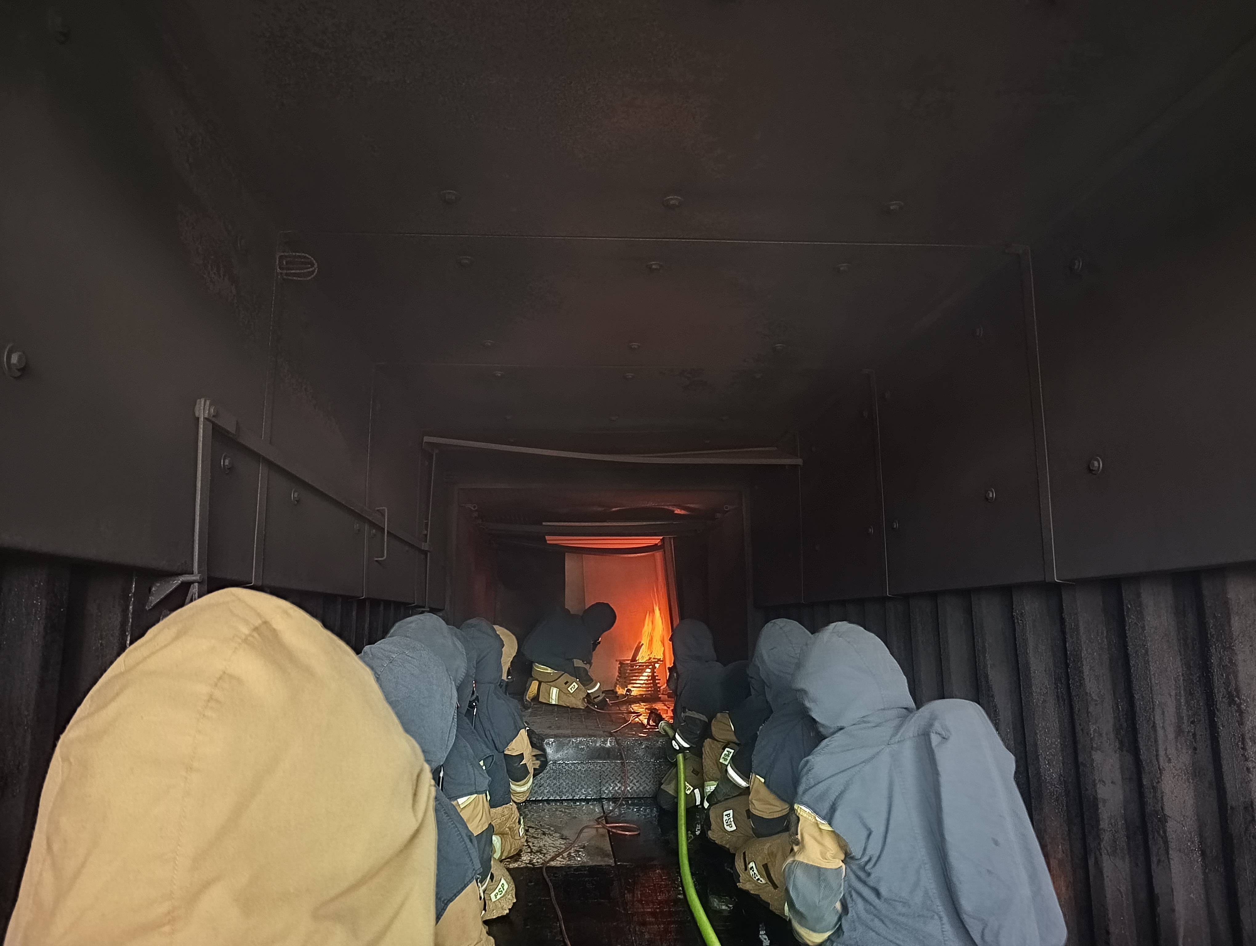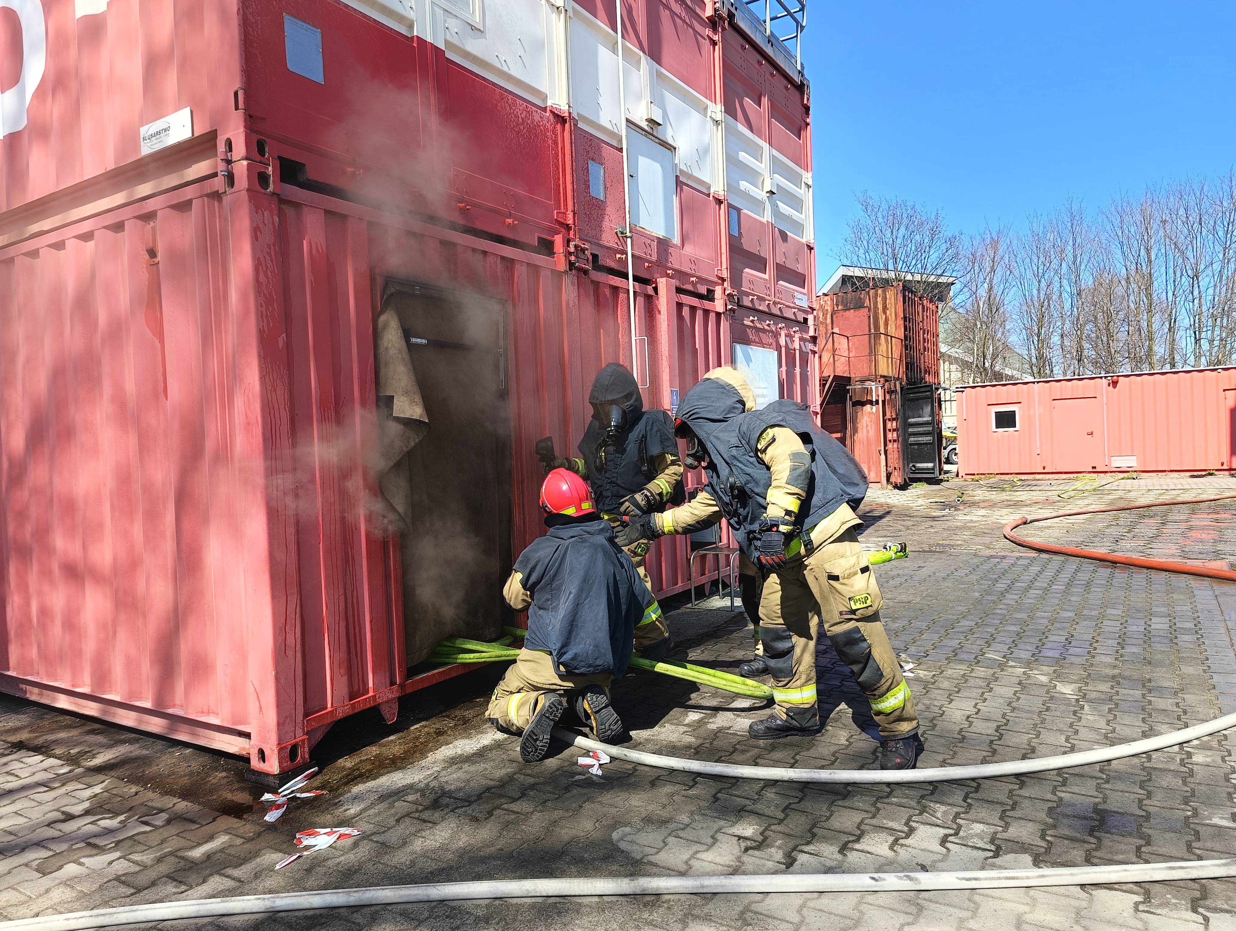 Zajęcia praktyczne odbywały się na terenie poligonu szkolnego w modułowym, wielofunkcyjnym trenażerze ratowniczym, w części ogniowej, jak i taktycznej. Kandydaci na instruktorów mieli okazję do doskonalenia umiejętności praktycznych z zakresu m.in. technik operowania prądami gaśniczymi, prowadzenia i zabezpieczania linii gaśniczych, postępowania podczas otwierania drzwi w budynku objętym pożarem, współpraca w rocie i przemieszczanie się w pomieszczeniach zadymionych, zasady przeszukiwania pomieszczeń (np. z użyciem kamery termowizyjnej, z wykorzystaniem linii gaśniczej, bez linii gaśniczej z wykorzystaniem np. wielofunkcyjnej pętli ratowniczej i linki lub bez dodatkowych przyrządów), sposoby prowadzenia wentylacji taktycznej z wykorzystaniem wentylacji naturalnej i wymuszonej (np. z użyciem wentylatorów i kurtyny dymowej).