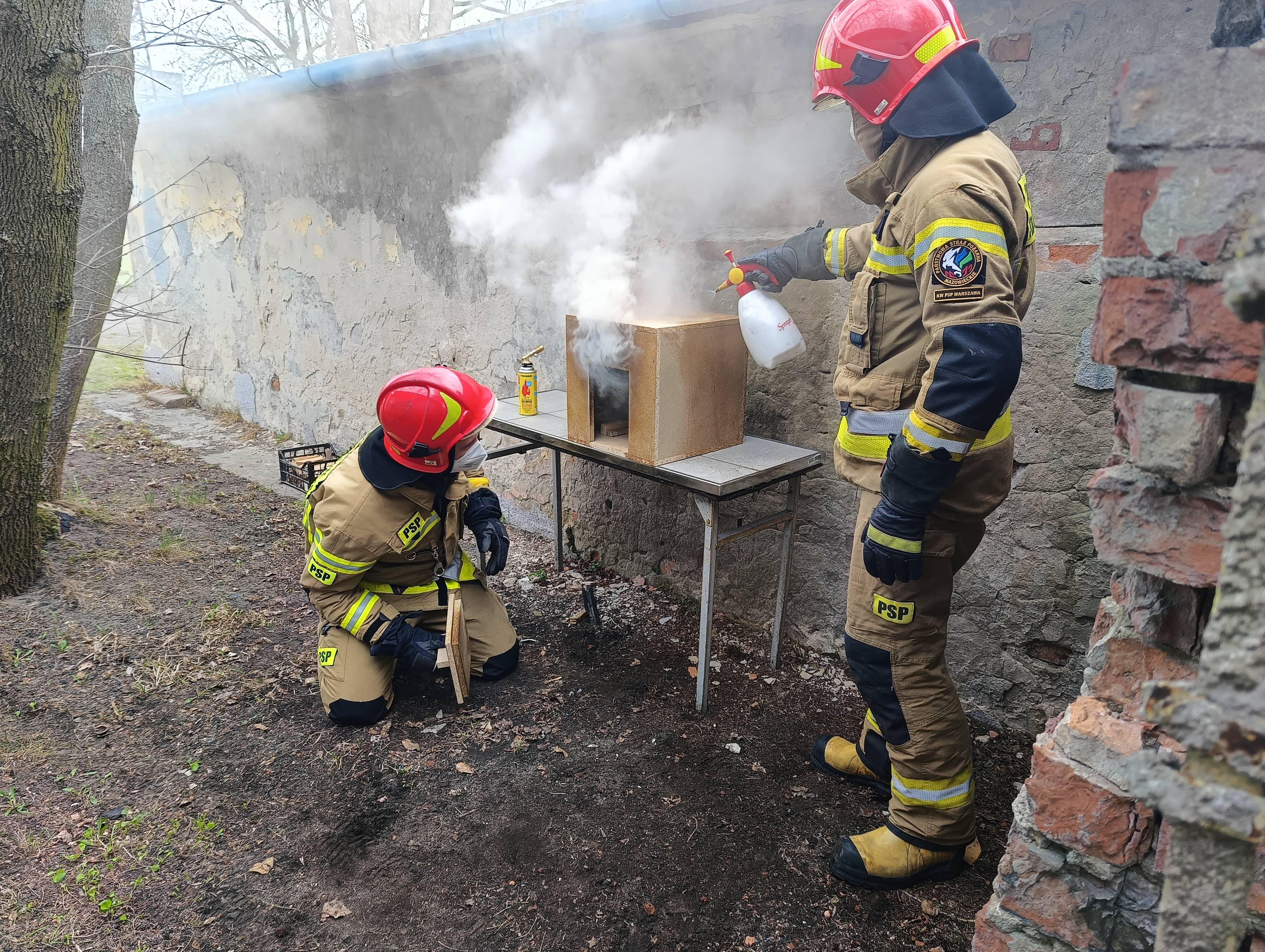 Warsztaty poprowadzili instruktorzy z zakresu gaszenia pożarów wewnętrznych:
