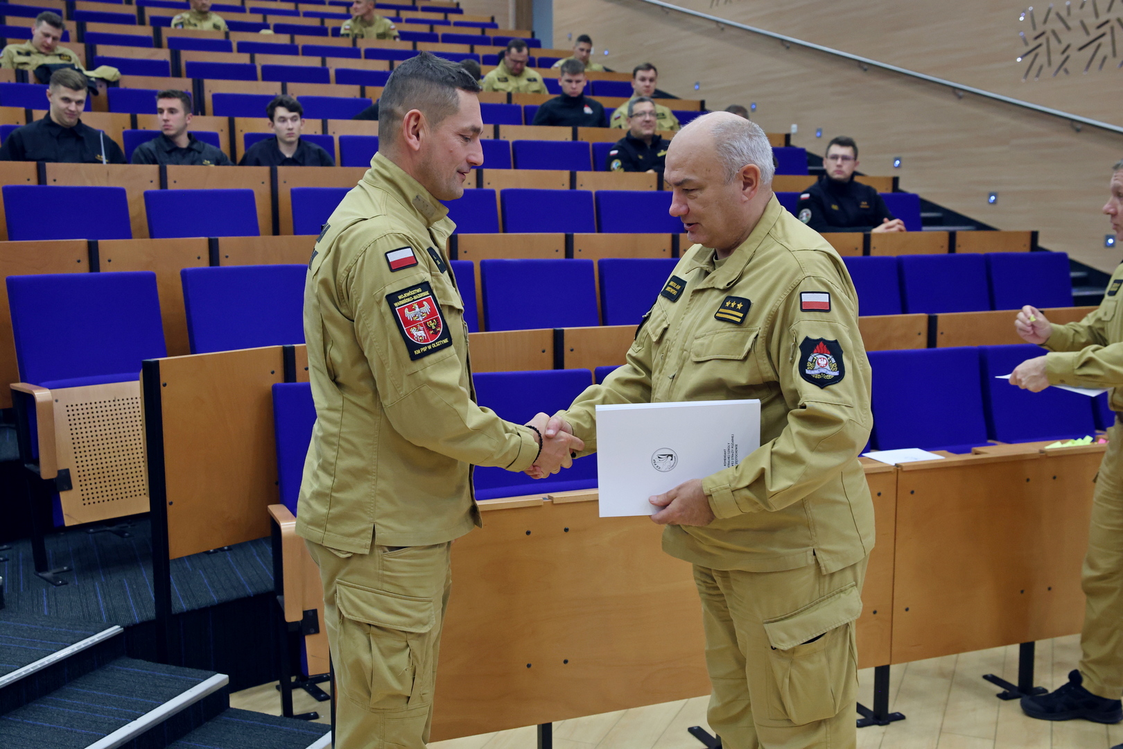 W zakończeniu szkolenia uczestniczył Komendant Centralnej Szkoły PSP st. bryg. Jarosław Jankowski, który wręczył uczestnikom stosowne zaświadczenia.
