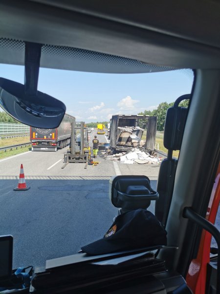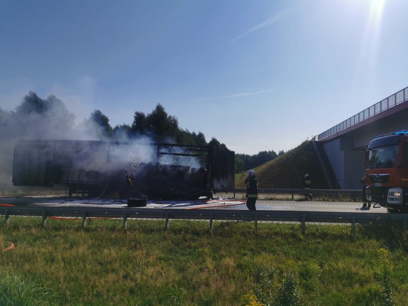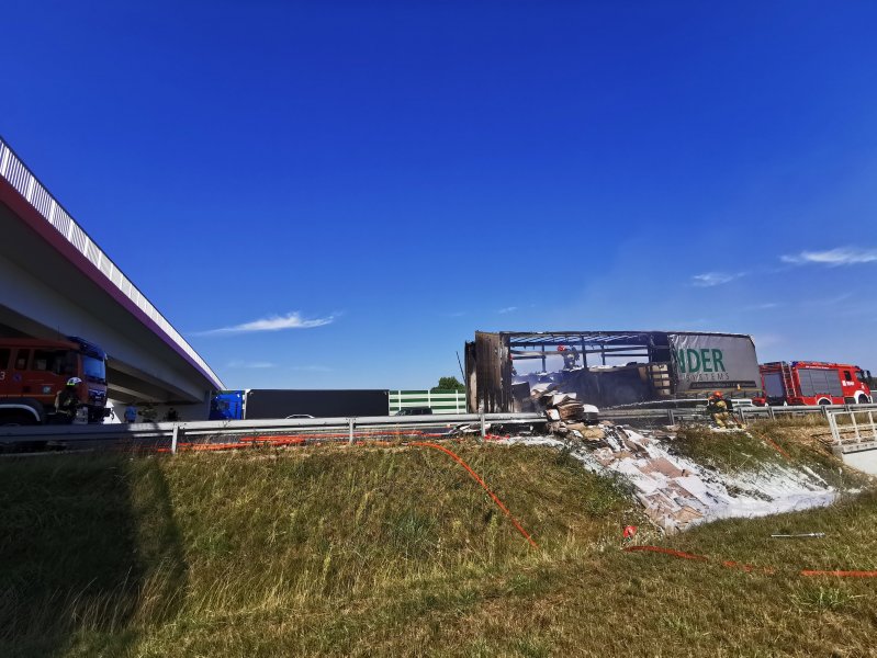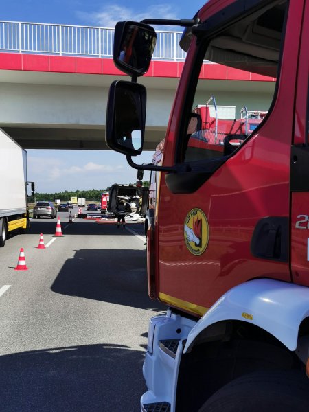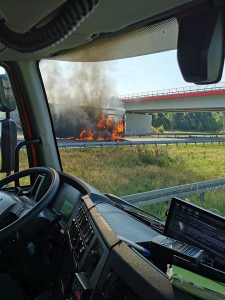 SKKM PSP w Częstochowie przyjęło zgłoszenie w postaci formatki z SI WCPR o treści "W stronę Częstochowy, pali się naczepa, widać płomienie, ciągnik odjechał by się ratować. A1, 443 kilometr w stronę Częstochowy".
