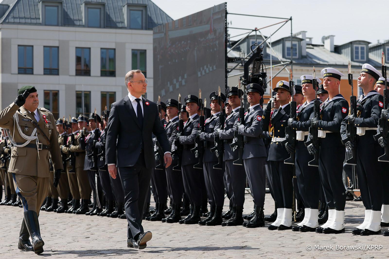 Obchody rocznicy rozpoczęły się punktualnie o godzinie 12:00 na Placu Zamkowym w Warszawie. Oprócz pary prezydenckiej na uroczystość przybyli m.in. marszałek Sejmu Szymon Hołownia, przedstawiciele rządu - wicepremier, szef MON Władysław Kosiniak-Kamysz, wicepremier, minister cyfryzacji Krzysztof Gawkowski, minister sprawiedliwości Adam Bodnar i przedstawiciele generalicji wraz z Komendantem Głównym Państwowej Straży Pożarnej nadbryg. dr inż. Mariuszem Feltynowskim oraz Rektorem-Komendantem APoż. bryg. dr inż. Tomaszem Klimczakiem, prof. Uczelni.