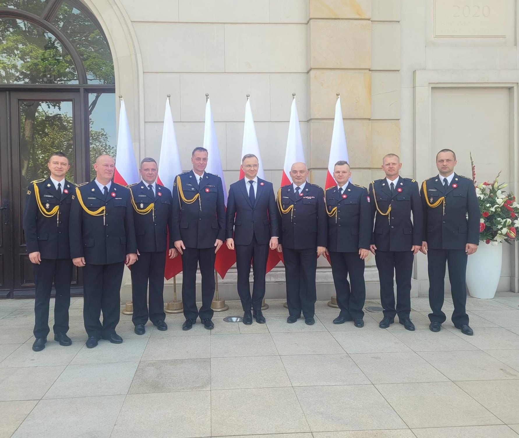 Nasi strażacy na czele z Komendantem Centralnej Szkoły Państwowej Straży Pożarnej w Częstochowie bryg. Jarosławem Jankowskim po uroczystościach na Placu Zamkowym zostali zaproszeni do pałacu prezydenckiego, gdzie usłyszeli słowa uznania zarówno dla nich, jak i wszystkich strażaków Państwowej i Ochotniczej Straży Pożarnej.