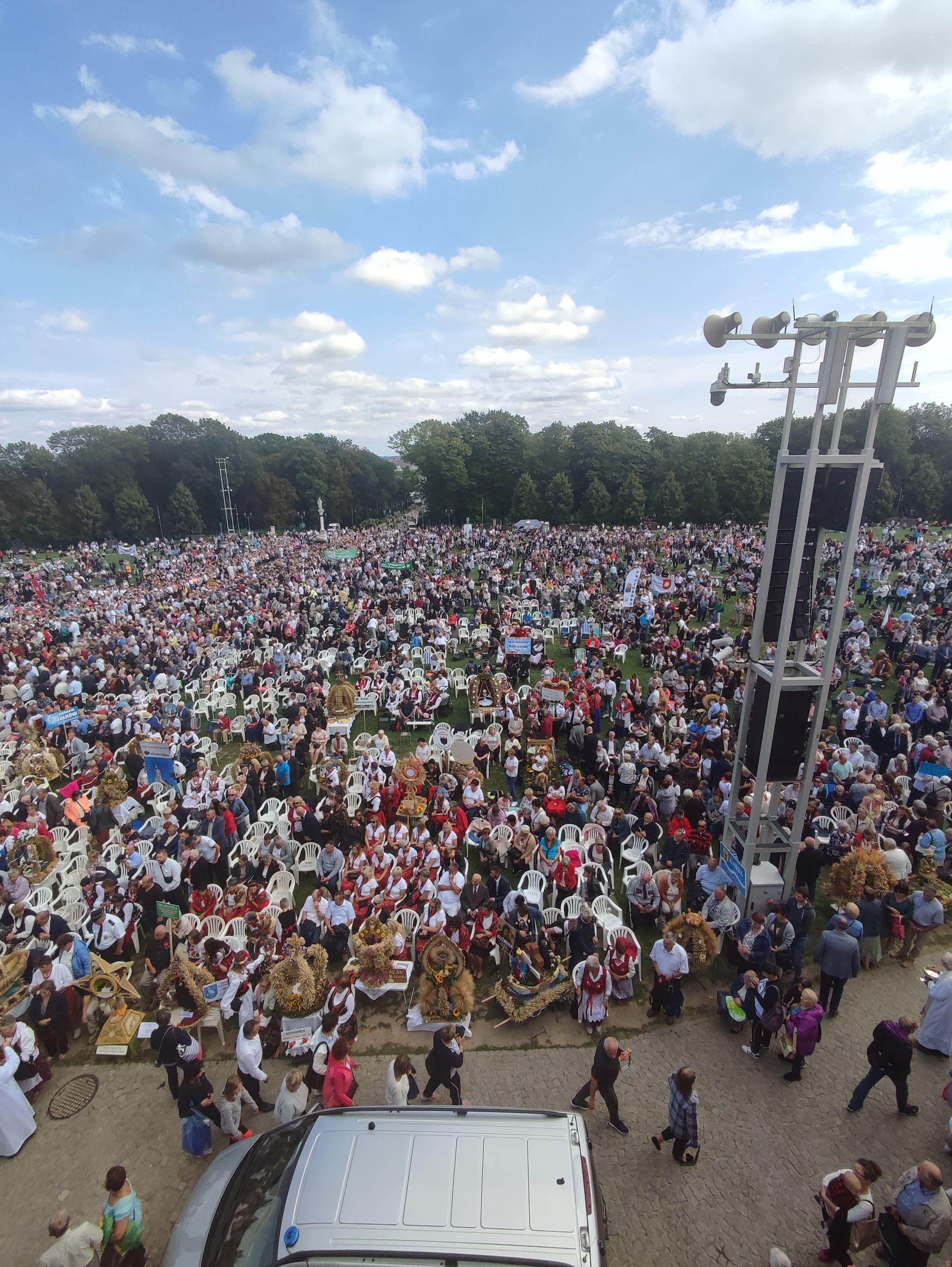 Tradycja Dożynek Jasnogórskich sięga czasów stanu wojennego, kiedy to rolnicy po raz pierwszy pielgrzymowali do Matki Bożej Jasnogórskiej wraz z przygotowanymi ze swoich plonów wotami. Jasnogórskie święto dziękczynienia za plony – ogólnopolskie dożynki zgromadziły rzesze rolników ale też i ludzi doceniających ich ciężką pracę. Po rozpoczęciu Mszy Św., pielgrzymów przywitał przeor jasnogórskiego sanktuarium, o. Samuel Pacholski.