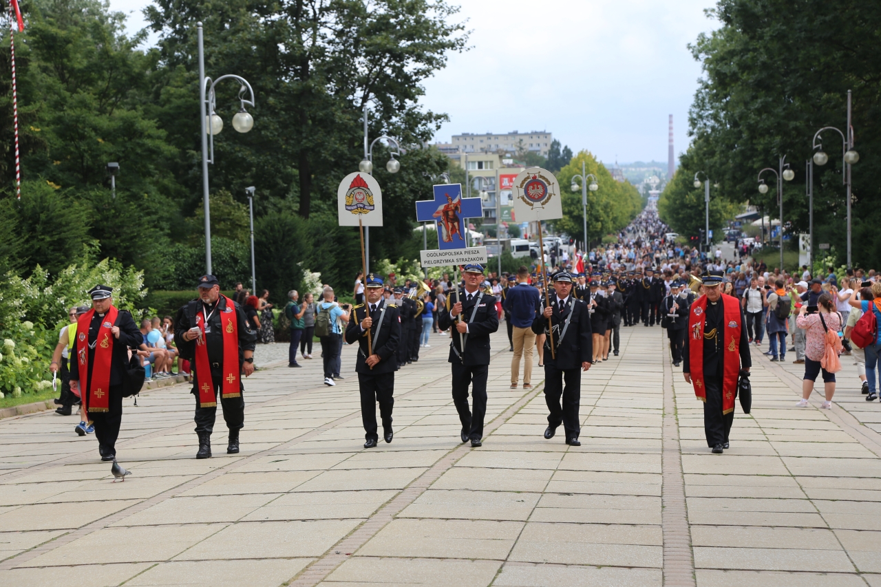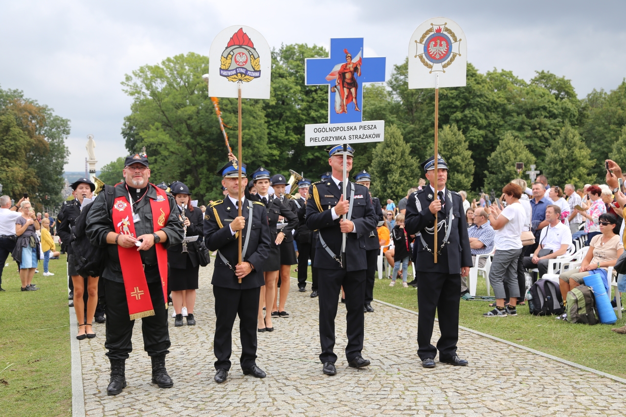 Pielgrzymi na Jasną Górę weszli 14 sierpnia witani przez komendantów i poczty sztandarowe Centralnej Szkoły Pożarniczej w Częstochowie, Komendy Miejskiej PSP w Częstochowie oraz kompanię honorową PSP województwa śląskiego. „Pielgrzymka to szczególny czas, kiedy wędrujemy, kiedy zbliżamy się do Boga, poprzez zmęczenie, poprzez pomoc drugiemu człowiekowi, i też doświadczamy tej miłości drugiego człowieka, która na szlaku pielgrzymim jest wszechobecna, chociażby przez podanie wody, czy podanie pomocnej dłoni w przypadku, kiedy to jest potrzebne”, mówili maszerujący pielgrzymi. Z modlitwą za wszystkich strażaków, a zwłaszcza tych, którzy teraz pełnią trudną misję, pomagając w gaszeniu pożarów we Francji i w walce z katastrofą ekologiczną na rzece Odrze, na Jasną Górę dotarli przedstawiciele XVI Ogólnopolskiej Pielgrzymki Pieszej Strażaków.
