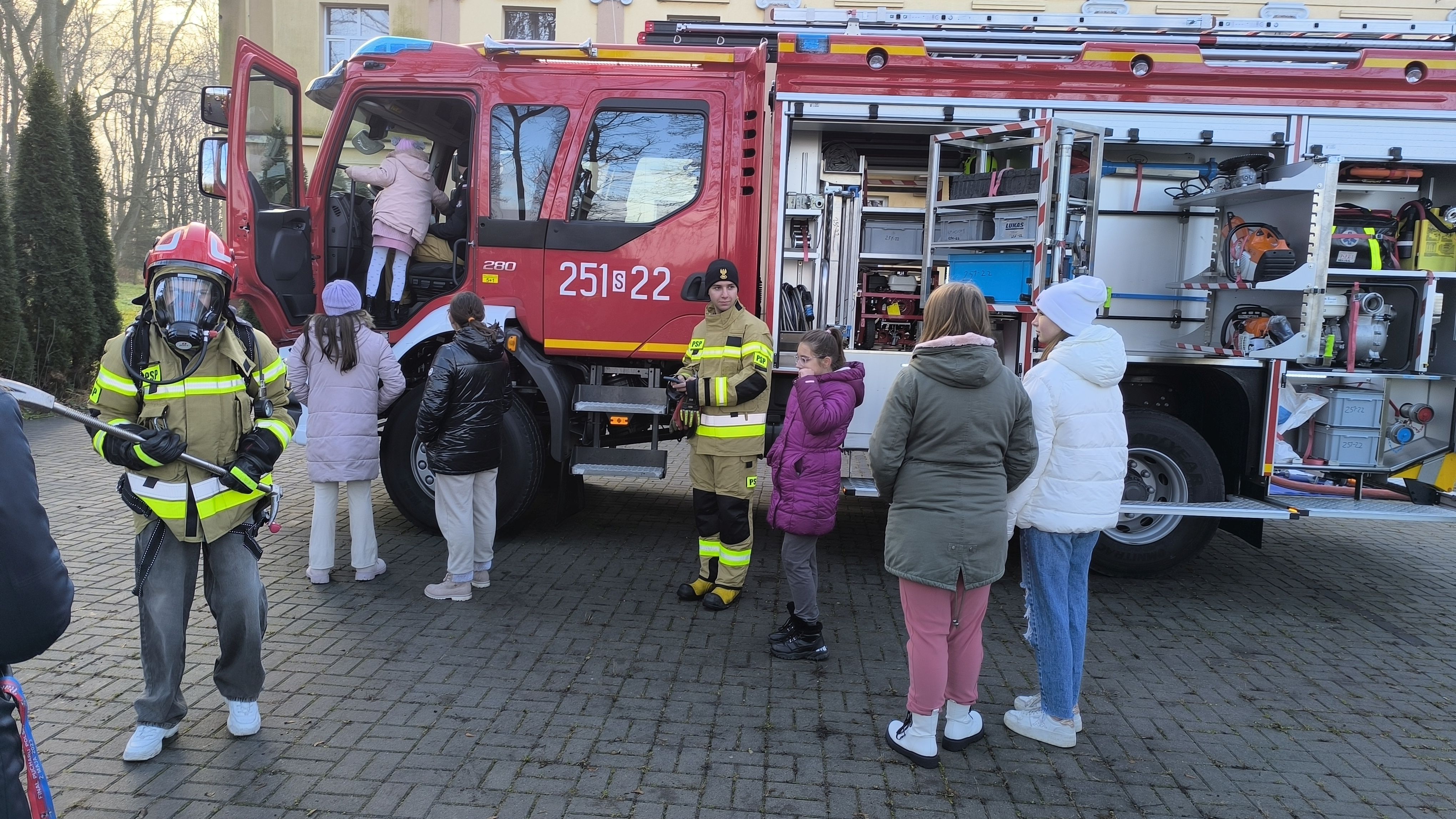 Spotkanie zakończyło się wspólnym poczęstunkiem oraz przekazaniem dzieciom drobnych upominków, które miały na celu uświetnienie tego wyjątkowego dnia. Wizyta strażaków była nie tylko edukacyjnym doświadczeniem, ale również miłym i inspirującym wydarzeniem dla wszystkich uczestników.