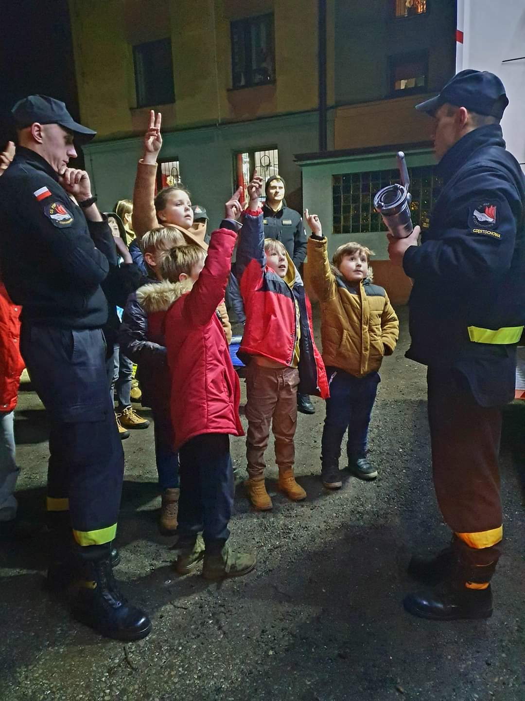 Dzieci ponadto wysłuchały porad strażaków, dotyczących zasad bezpiecznego postępowania w przypadku wystąpienia pożaru oraz zasad poprawnego alarmowania służb ratowniczych. Dzieciaki oglądały sprzęt pożarniczy, pokaz akcji ratowniczo-gaśniczej.