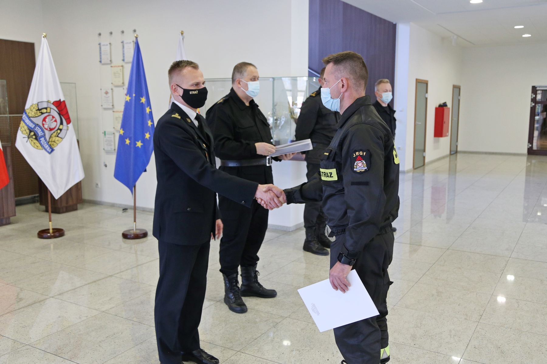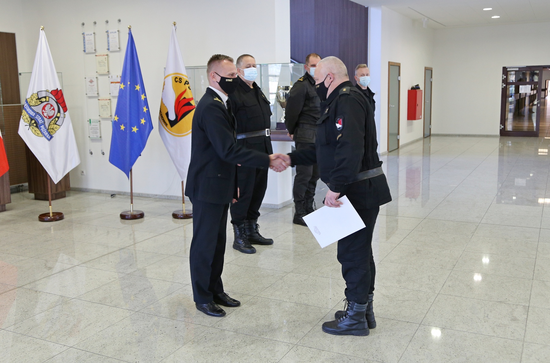 Na zakończenie Zastępca Komendanta Centralnej Szkoły PSP w Częstochowie bryg. Damian Hajdas wręczył uczestnikom szkolenia stosowne zaświadczenia. W uroczystym zakończeniu szkolenia udział wzięli również: Naczelnik Wydziału Szkoleń Specjalistycznych i Współpracy Międzynarodowej st. bryg. Bogumił Zalewski, Zastępca Naczelnika Wydziału Nauczania bryg. Mariusz Przygoda oraz kierownik szkolenia mł. kpt. Adrian Barasiński.