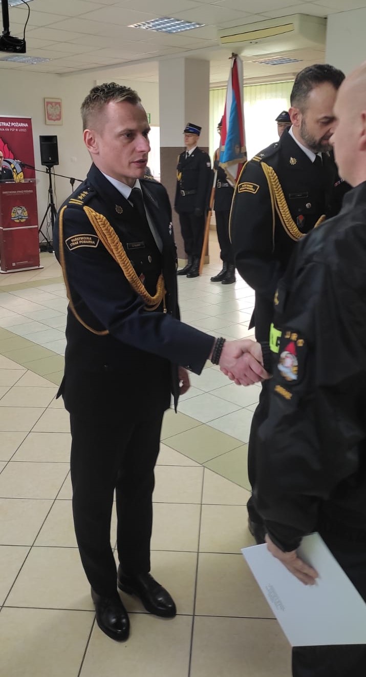 Podczas uroczystości Zastępca Komendanta Centralnej Szkoły PSP w Częstochowie st. bryg. dr Damian Hajdas oraz Zastępca Wojewódzkiego Komendanta PSP w Łodzi st. bryg. Paweł Malinowski dokonali wręczenia świadectw ukończenia szkolenia absolwentom. Podczas uroczystości dokonano również podsumowania zrealizowanego szkolenia, podkreślając walory dydaktyczno-organizacyjne realizacji przedsięwzięcia na terenie bazy dydaktycznej Ośrodka Szkolenia KW PSP zlokalizowanej w Sieradzu oraz wsparcie okazane przez kierownictwo i kadrę dydaktyczną CS PSP w Częstochowie.