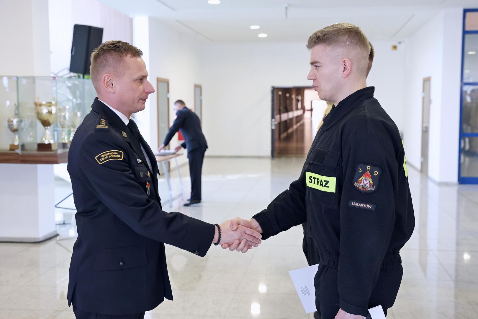 Uroczyste wręczenie zaświadczeń odbyło się z udziałem st. bryg. Jarosława Jankowskiego, Komendanta Centralnej Szkoły PSP w Częstochowie, w obecności kadry CS PSP.