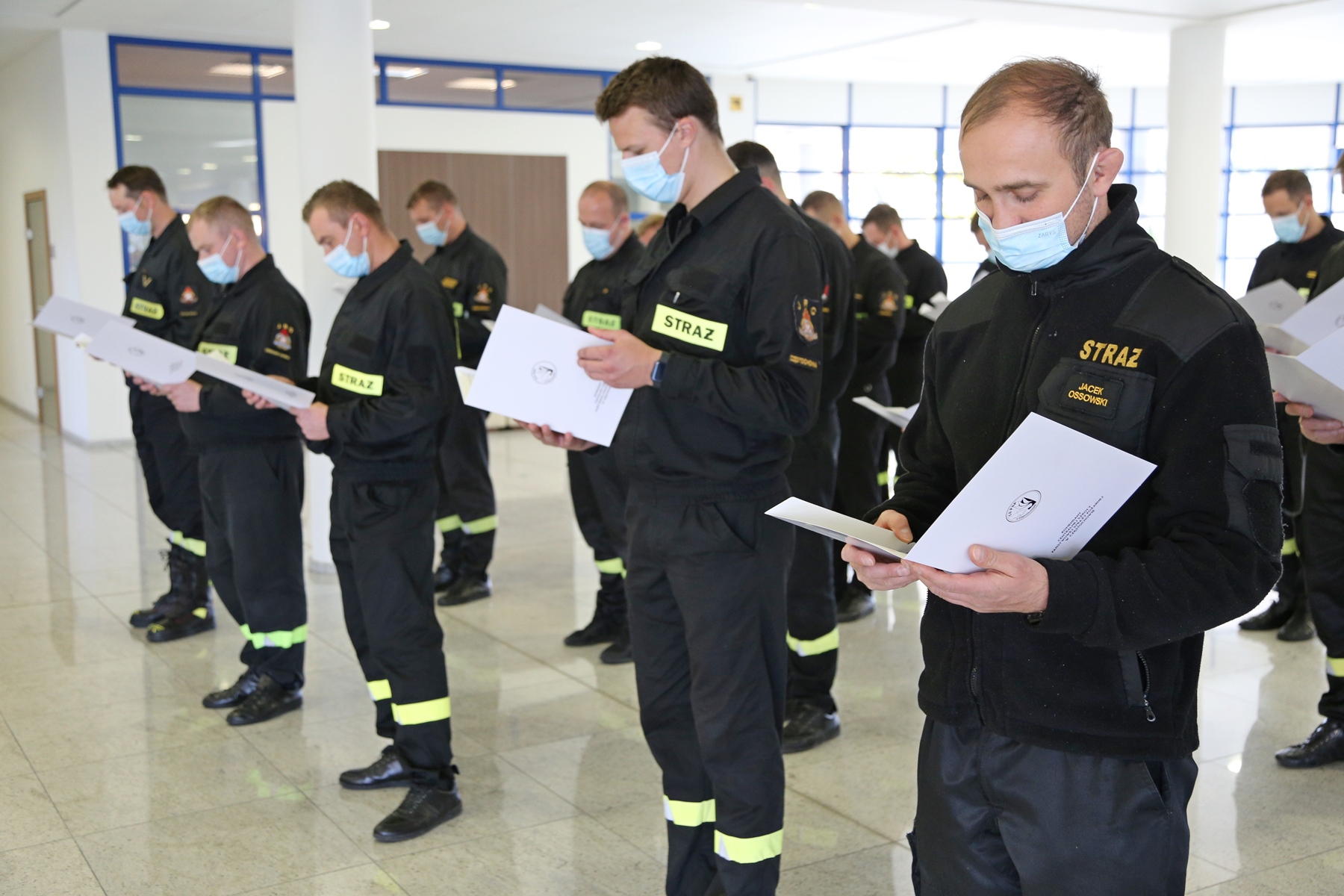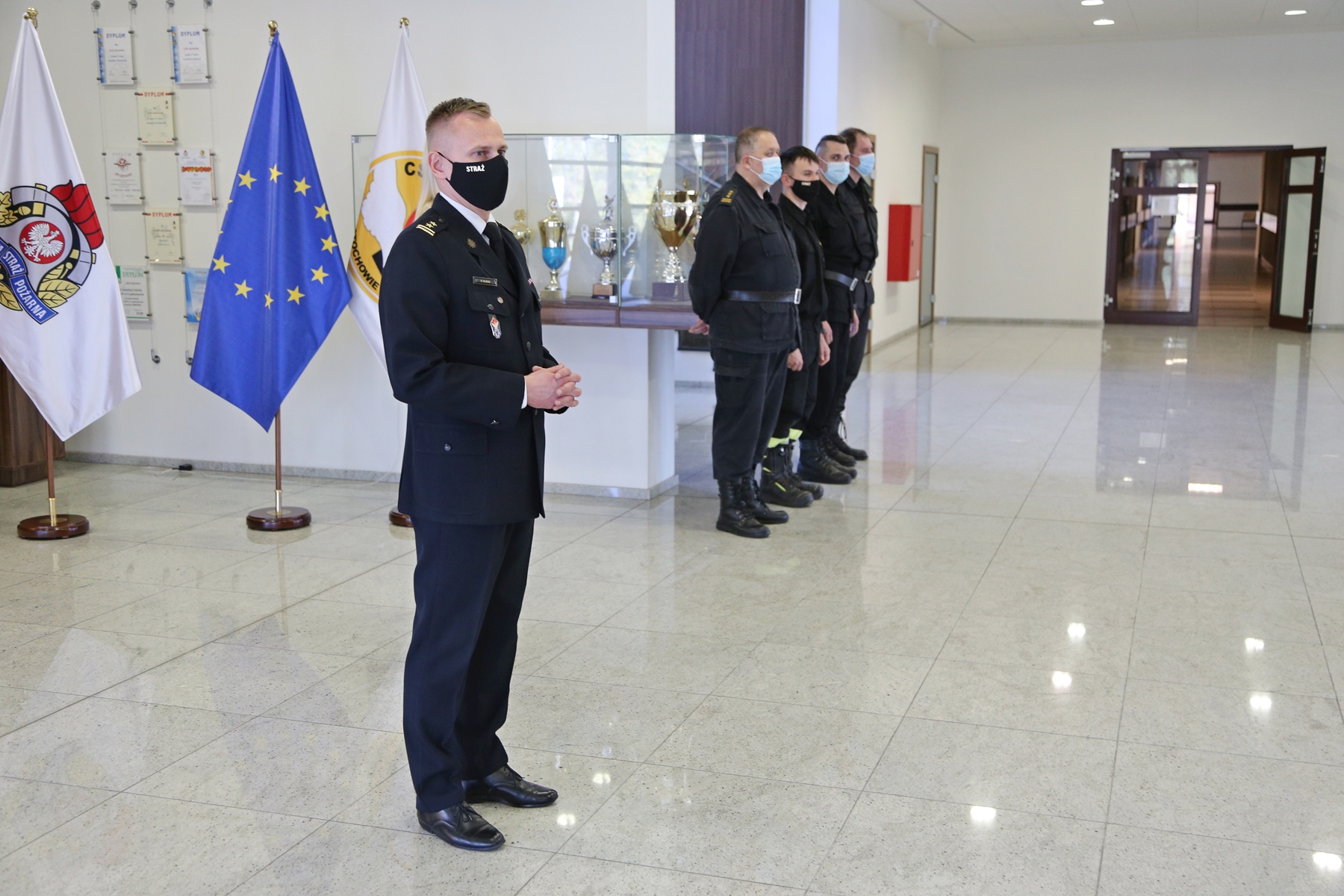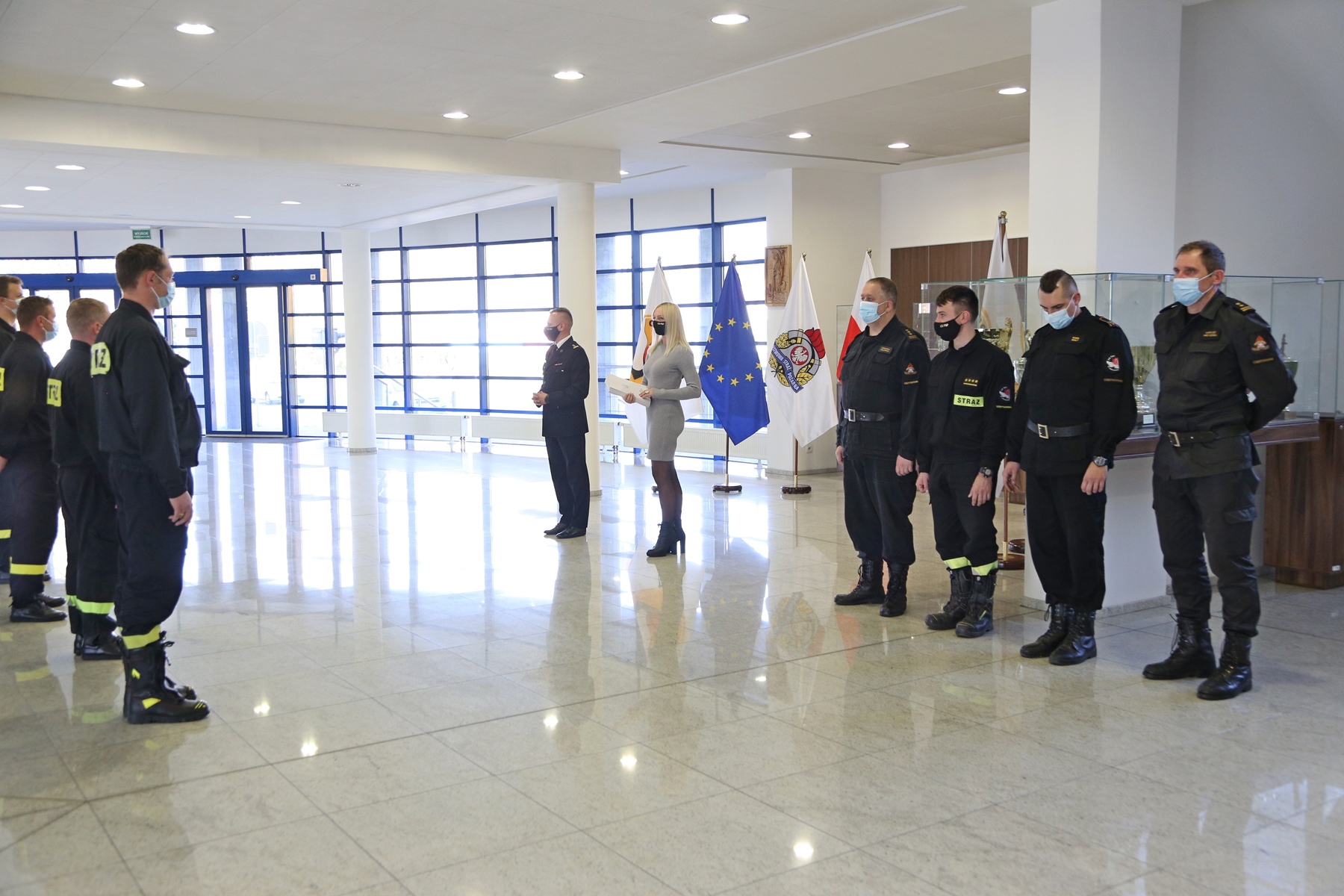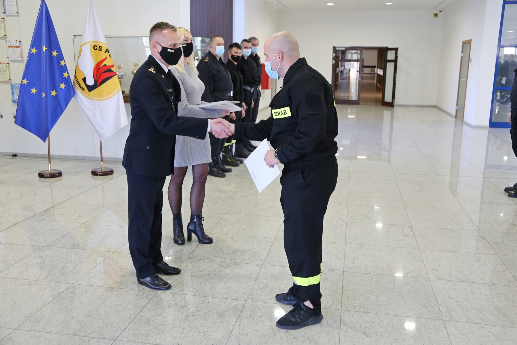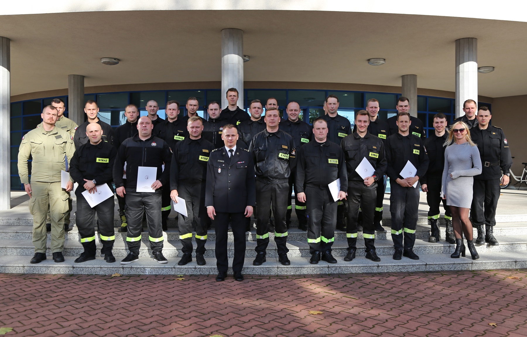 Na zakończenie uczestnicy szkolenia po pozytywnie zaliczonym egzaminie otrzymali zaświadczenia o ukończeniu przedmiotowego szkolenia. W uroczystości zakończenia udział wziął i wręczył stosowne zaświadczenia Zastępca Komendanta Centralnej Szkoły PSP bryg. Damian Hajdas w obecności Zastępcy Naczelnika Wydziału Nauczania bryg. Mariusza Przygody, Naczelnika Wydziału Szkoleń Specjalistycznych i Współpracy Międzynarodowej st. bryg. Bogumiła Zalewskiego, st. kpt. Artura Wydry oraz mł. asp. Kamila Białego.