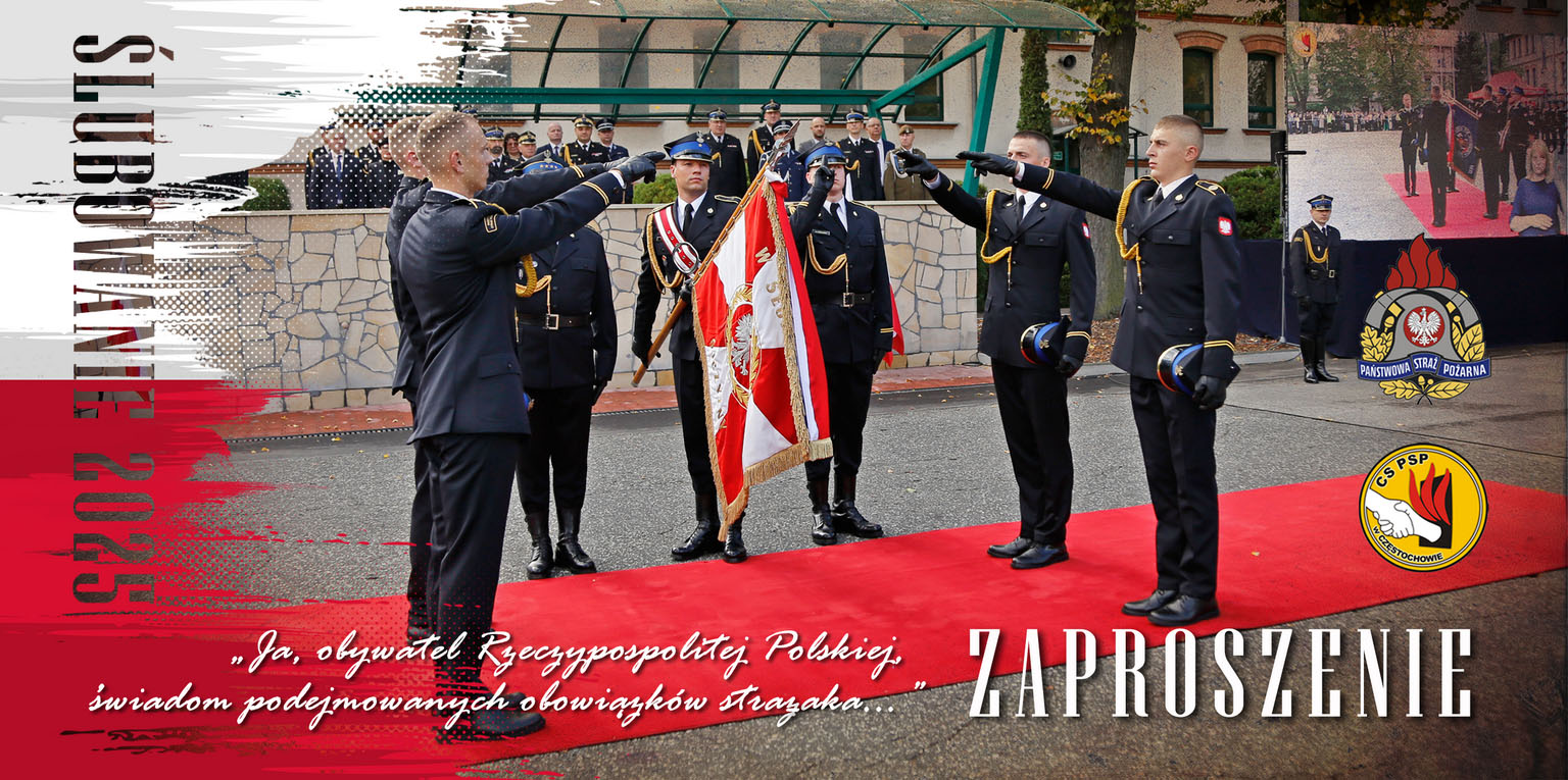 W dniu 30 października 2025 roku o godzinie 12:00 w Centralnej Szkole PSP w Częstochowie odbędzie się uroczystość ŚLUBOWANIA kadetów XXIX turnusu Studium Dziennego Aspirantów Państwowej Straży Pożarnej w Częstochowie.