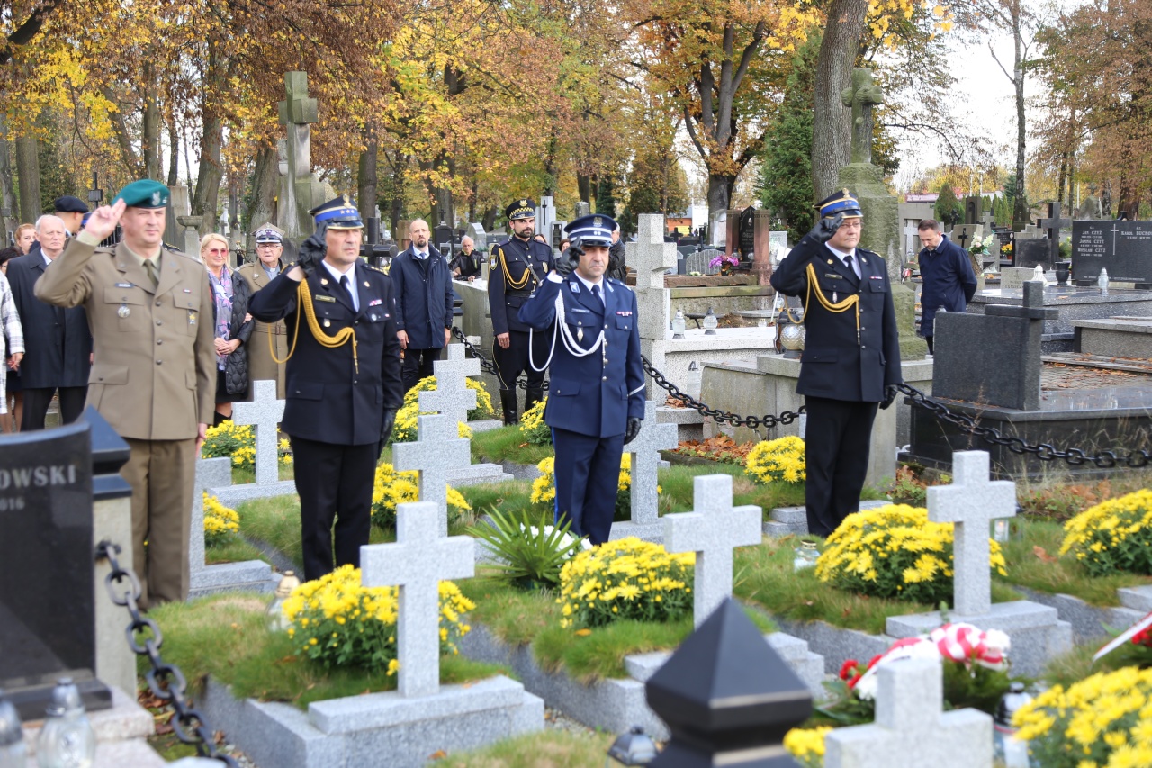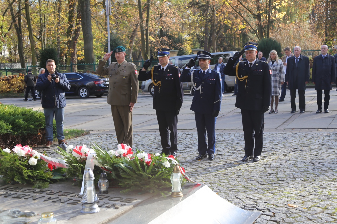 Na cmentarzu Kule złożono wieńce i zapalono znicze na zbiorowej mogile żołnierzy wojny obronnej z września 1939 roku, grobie Rzecznika Praw Obywatelskich Janusza Kochanowskiego oraz przy nagrobku Braci Niekrasz – poległego na początku wojny z bolszewikami Remigiusza oraz poległego w III Powstaniu Śląskim Stefana. Delegacje przyszły też przed pamiątkową tablicę oraz pomnik nagrobny Aurelii Woźnickiej – konspiratorki z czasów okupacji hitlerowskiej, żołnierki Armii Krajowej, więźniarki niemieckiego obozu w Ravensbrück i sowieckich łagrów, represjonowanej także po wojnie przez stalinowski reżim. Na kolejnej nekropolii – Cmentarzu św. Rocha – znicze zapłonęły na wojennej kwaterze 17 powstańców śląskich z 1921 roku. Ostatnimi odwiedzonymi miejscami pamięci były Grób Nieznanego Żołnierza oraz pomnik ks. Jerzego Popiełuszki w alei Sienkiewicza.