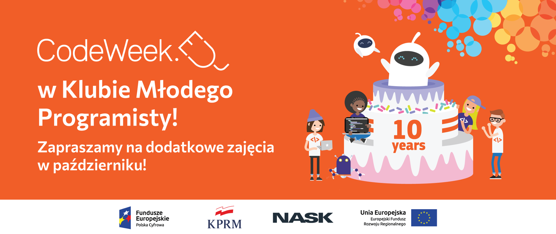 CodeWeek, czyli Europejski Tydzień Kodowania, jest oddolną inicjatywą polegającą na organizacji różnego typu zajęć promujących naukę programowania. W tym roku mamy dziesiątą, jubileuszową edycję CodeWeek. Z tej okazji w Klubach Młodego Programisty przygotowaliśmy bezpłatne zajęcia stacjonarne i online.